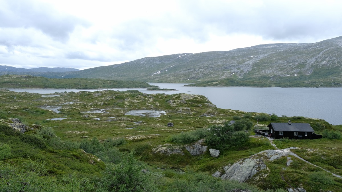 Na het opstaan rijden we effe enkele kilometers naar de openbare wc's van de nabij gelegen Eysteinkyrkja, een uitermate atypisch kerkje dat dateert van 1969. (foto's zie Google, lol). We maken daar een praatje met een Noors jong stel dat al twee weken in de regen stapt en overnacht. Het meisje is al die nattigheid stinkende beu. Als we vragen hoelang ze nog onderweg willen zijn, volgt het antwoord: "nog drie weken".... die Noorse genen, ze zijn niet te stuiten!