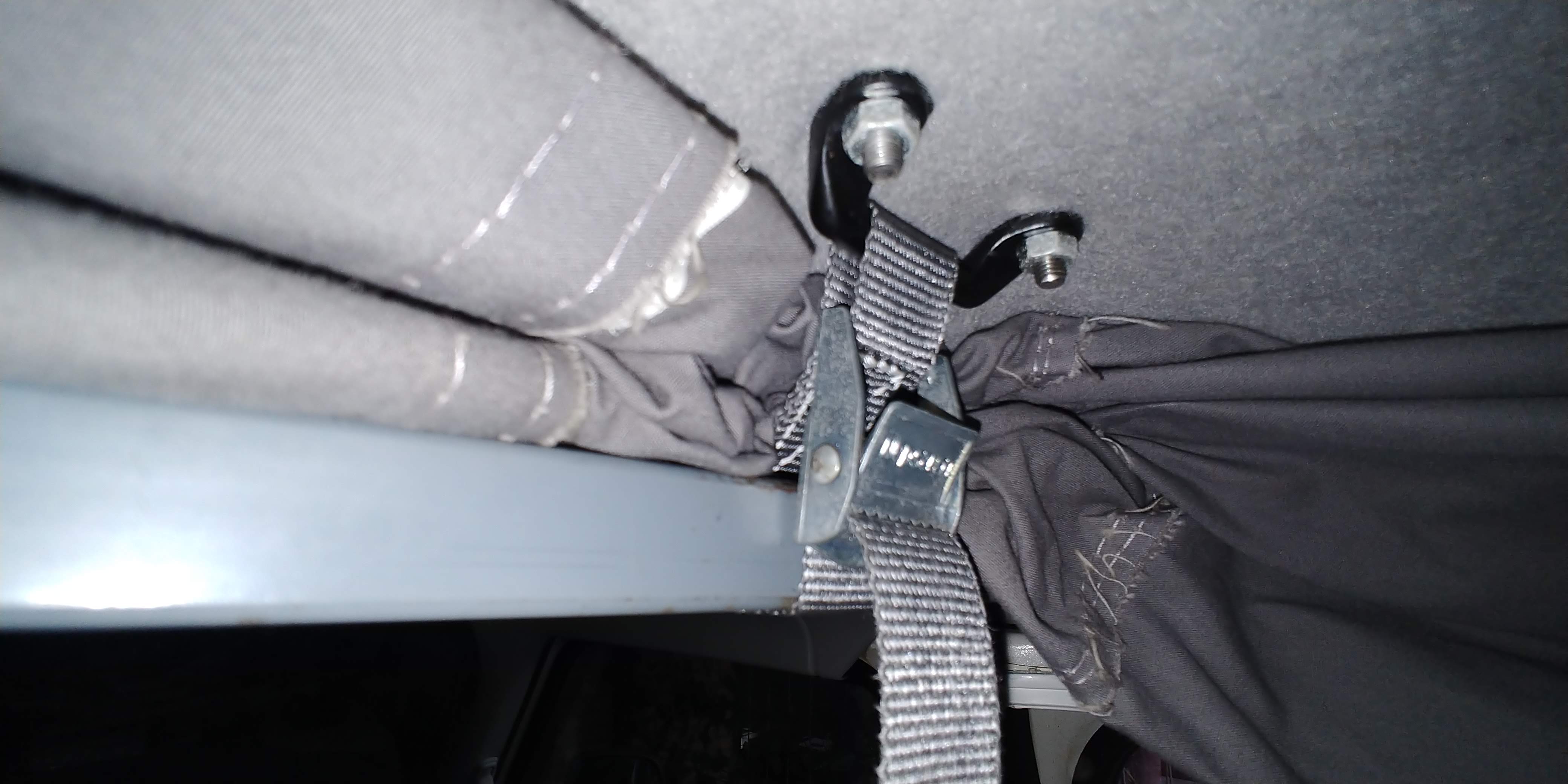 Bij mij zit er een stang overdwars waaraan het dak gezekerd wordt. Deze zit vastgelast aan de carrossrie. Wellicht dat dat voldoende is?