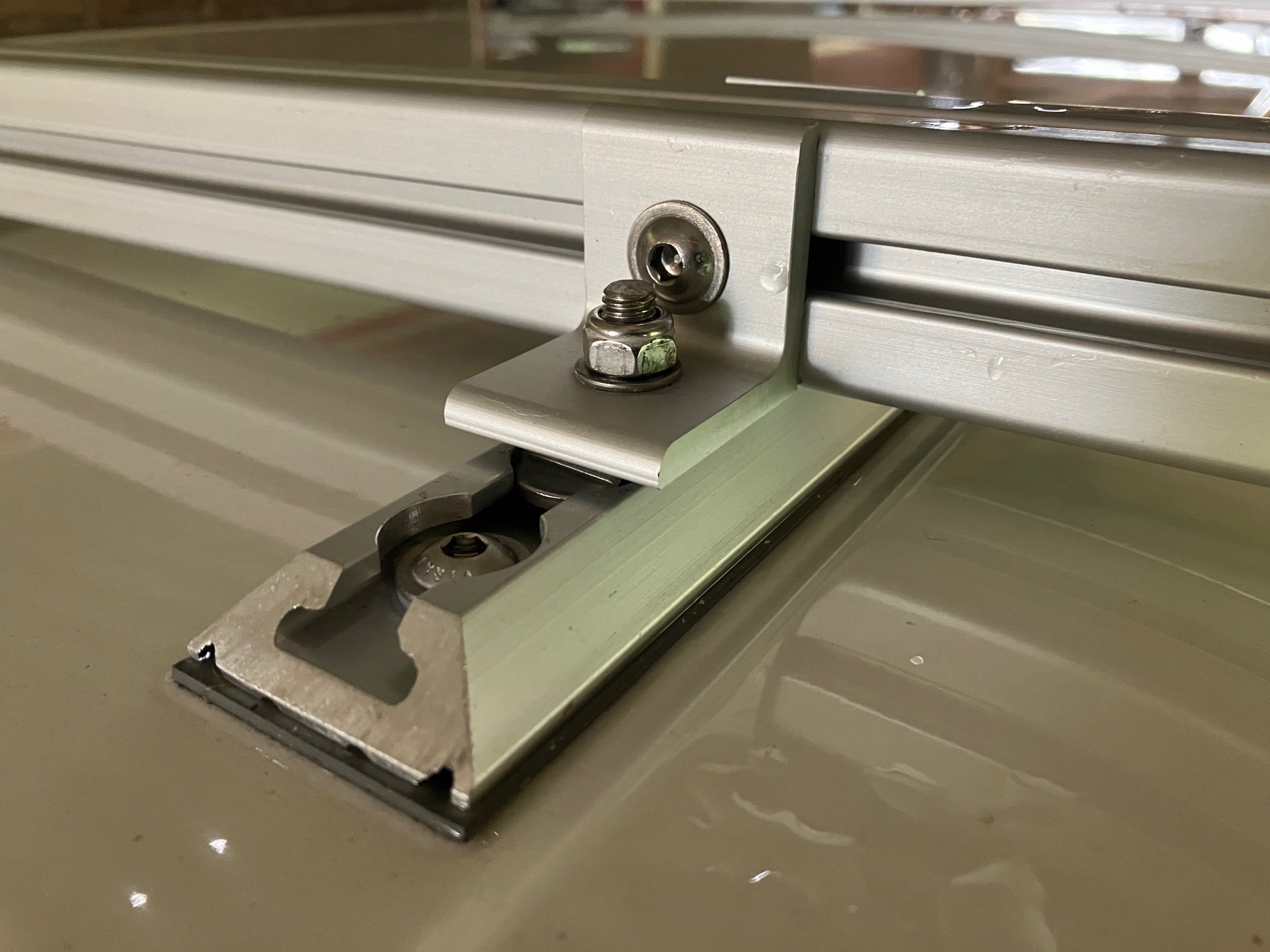 Beugels op de bestaande dak bouten kan, maar met gesloten hefslaapdak gaan de beugels onder het hefdak door.