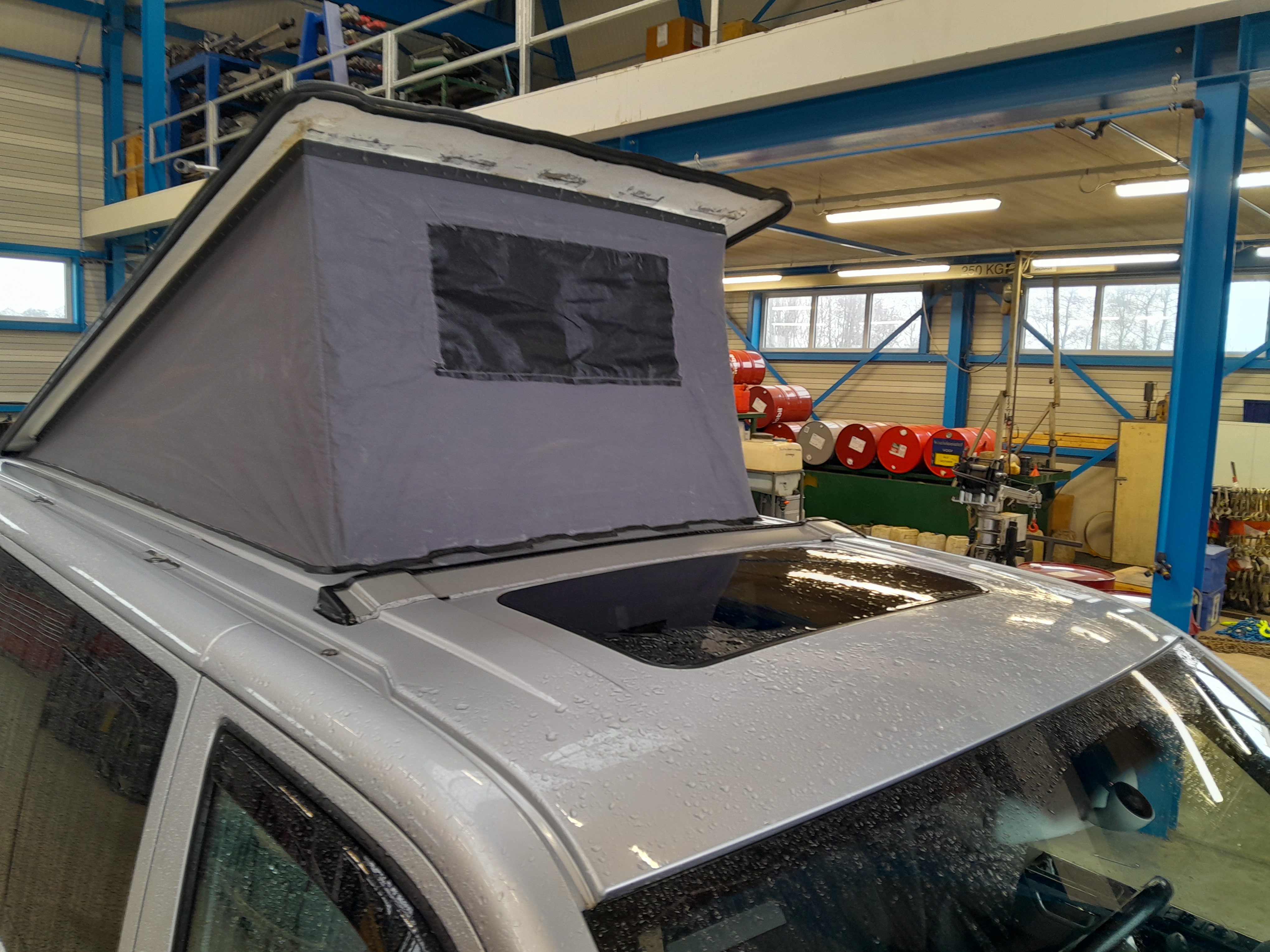 Dat betekent als de achterkant lager dan de voorkant van de bus staat blijf het water in de rails van het originele dakraam staan dit komt door dat ze hem afgeslepen hebben voor het hefdak en afgekit en nu geen afvoer voor water is aan de achterkant