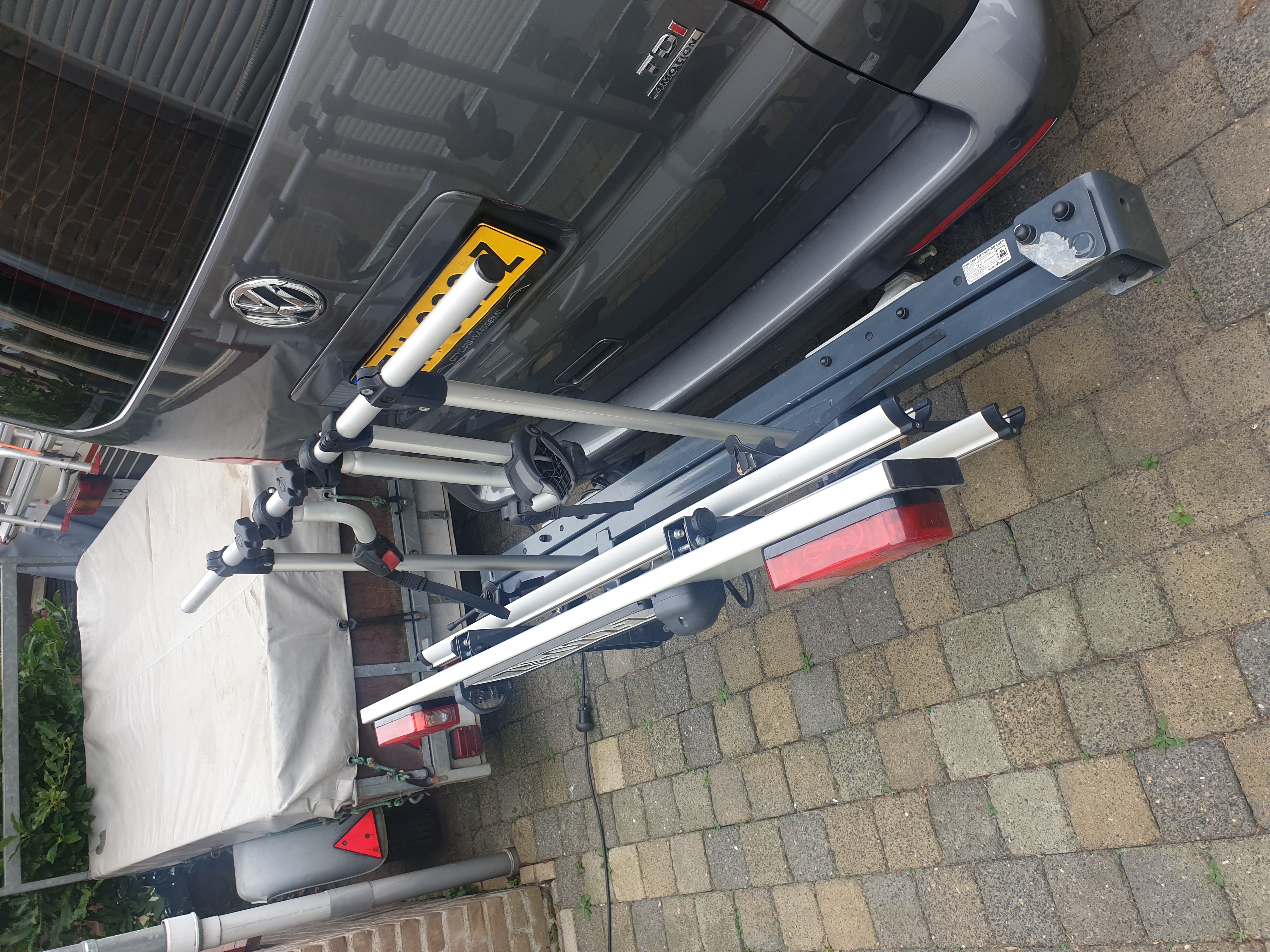 Iemand interesse in deze fietsendrager?. Wij hebben geen elektrische fietsen en daarvoor is hij juist uitermate geschikt. Hebben er veel profijt van gehad maar ik mis mijn trekhaak want je kan niet tegelijk de fietsendrager en een trekhaak gemonteerd hebben.