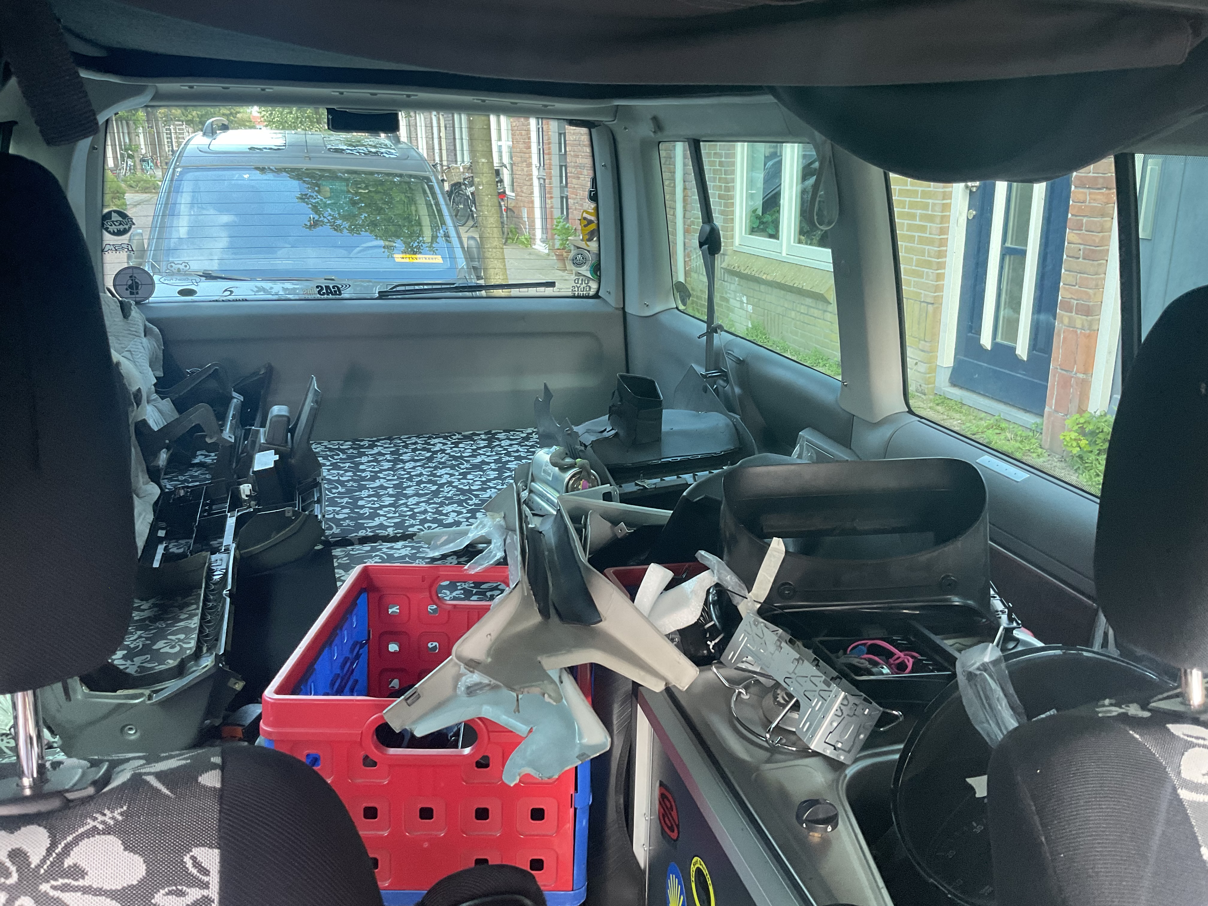 Dashboard heeft hij al los, de inbus achter het hitteschild is voor het kachelhuis.