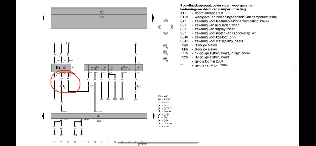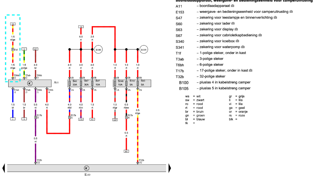 Ook wel vreemd dat er bij mij 4 draden de camper in gaan, waarvan ik de 4e nog steeds niet kan verklaren. Ik heb het schema gevonden en daar ook maar drie draden. Rara waar is de vierde (rood/geel) draad voor?