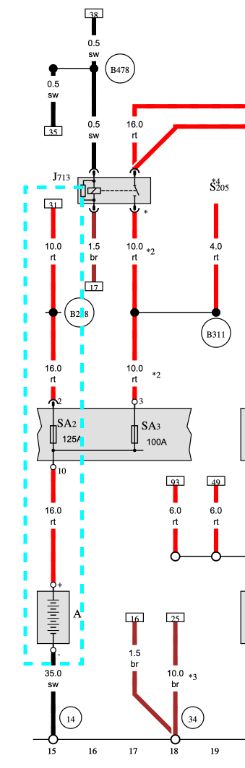 Het is een draadje dat naar de startaccu gaat. Dat is me nu duidelijk. Via een aantal zekeringen.
