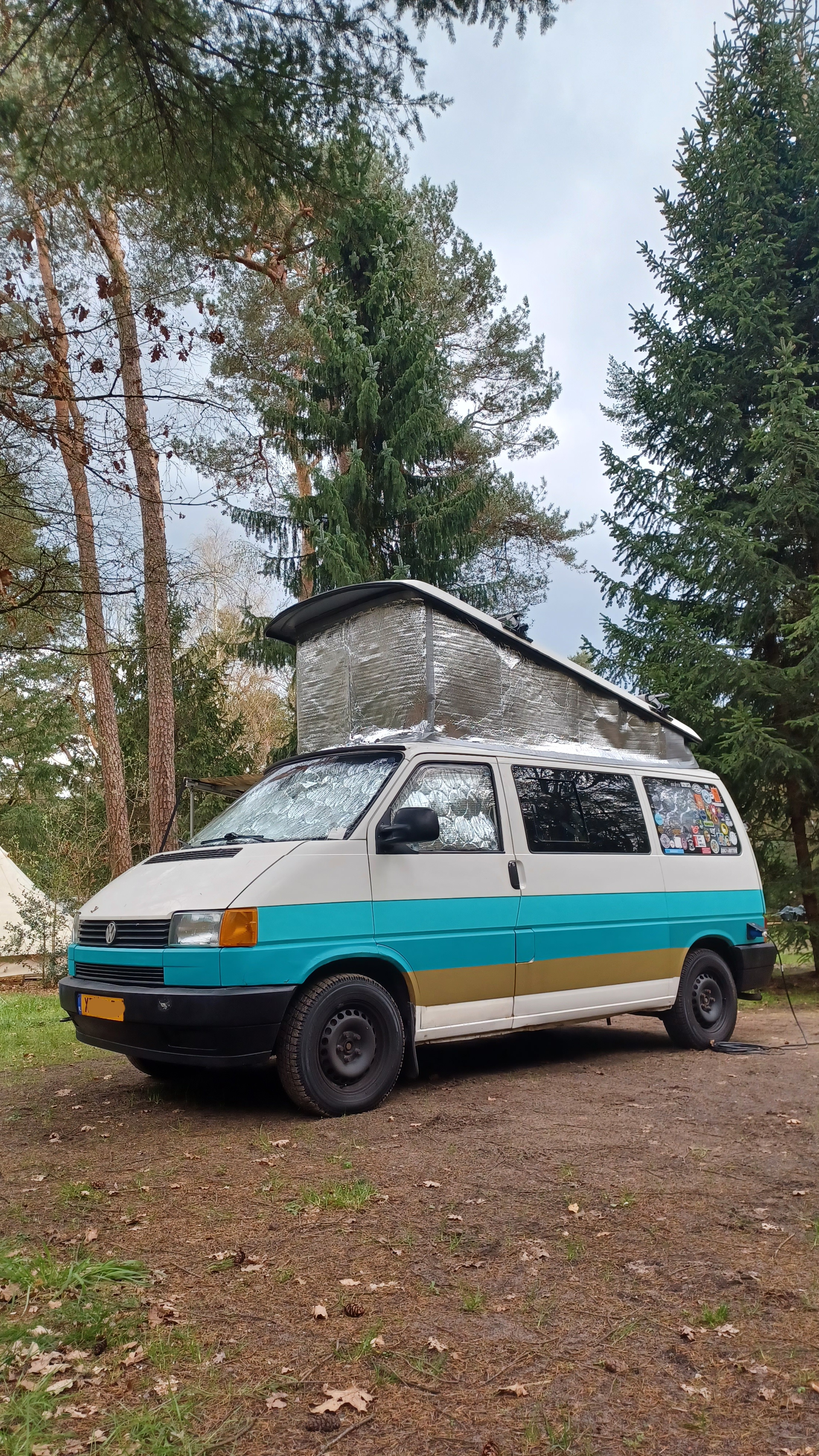 Mijn vrouw en ik zijn sinds een jaar of 11 aan het camperen. Eerst met een 1986 VW T3 1.6TD zelfbouw camper, ex- feuerwher, vervolgens naar een 1991 Fiat Ducato 2.5TD alkoof camper en nu al een dik jaar een 1991 VW T4 2.4D Westfalia camper.