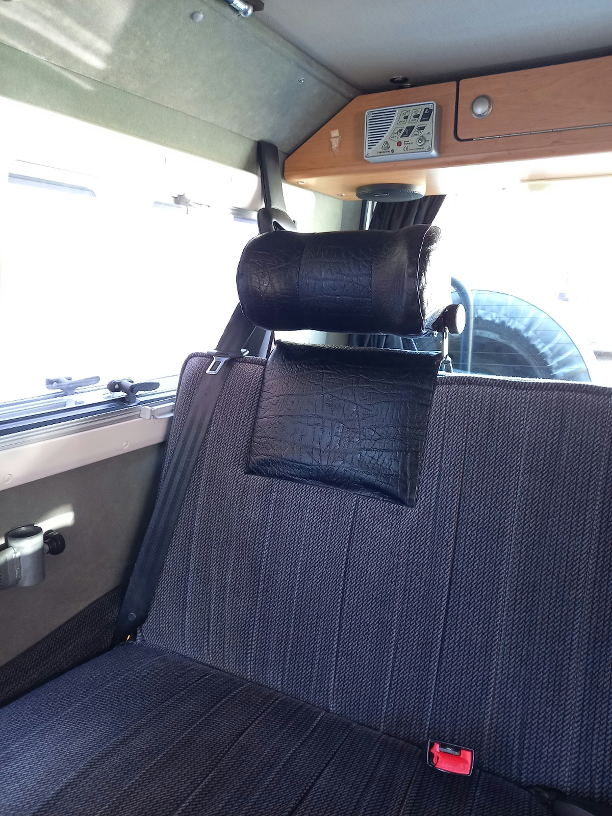 zoals je op de foto kan zien heeft de achterbank van onze Fischer camper geen hoofdsteunen. Onze dochter vindt dit niet prettig zo. Vooral omdat ze nu geen dutje kan doen.