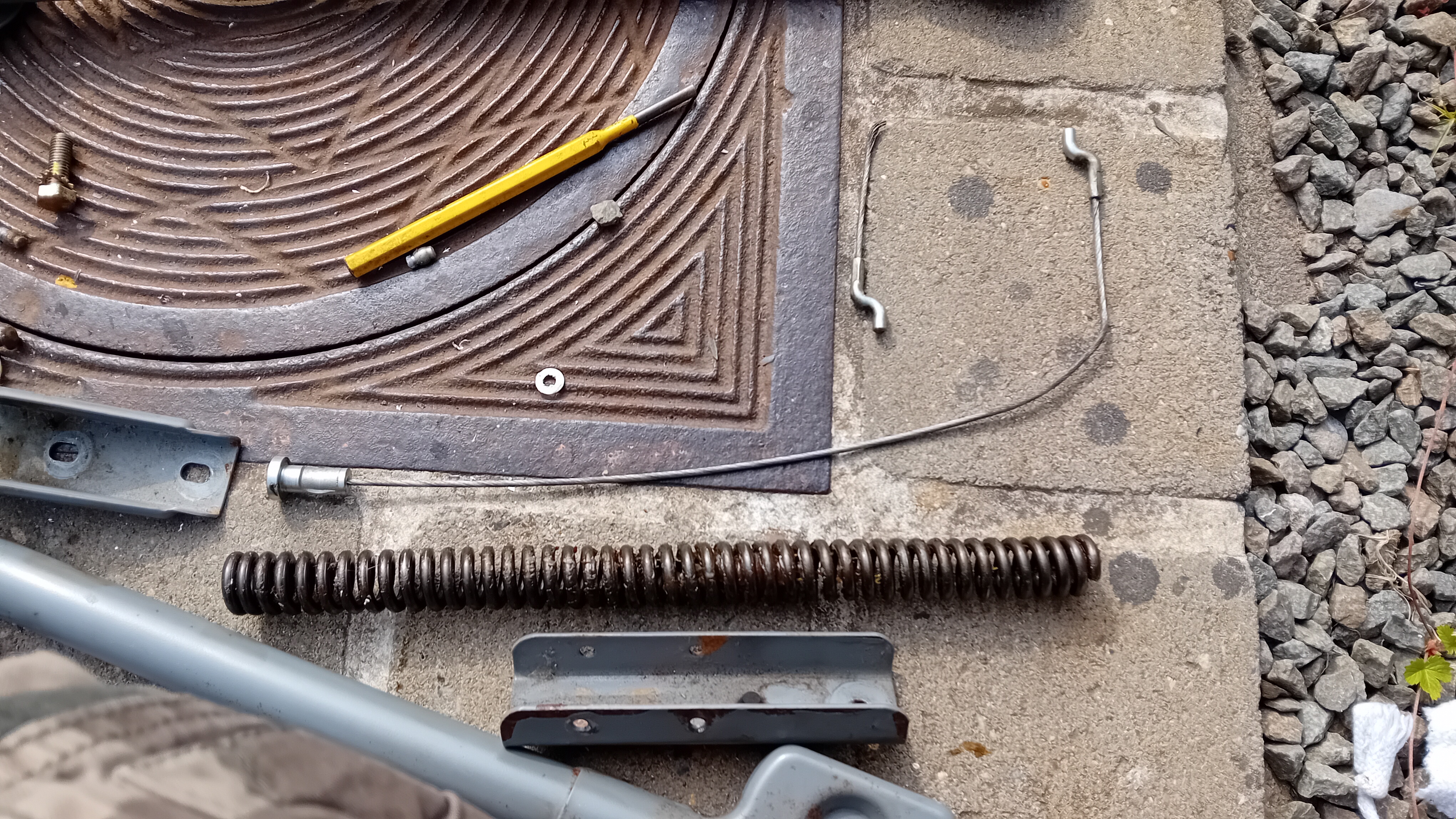 Nu wordt het de uitdaging om een vervangende kabel te vinden of maken met soortgelijke uiteinden...Had gedacht om aan een stuk nieuwe stalen kabel dezelfde uiteinden te lassen. Of wordt dat een zwak punt aan de las?