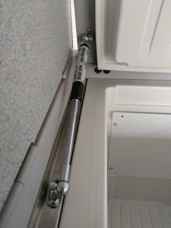 Mooi opgelost bij de koelkastklep. Bij mij zaten de kogel van de gasveer en het originele handgreepje elkaar in de weg. Ik moest een paar millimeter van het handgreepje afhalen. Had jij daar zo geen last van?
