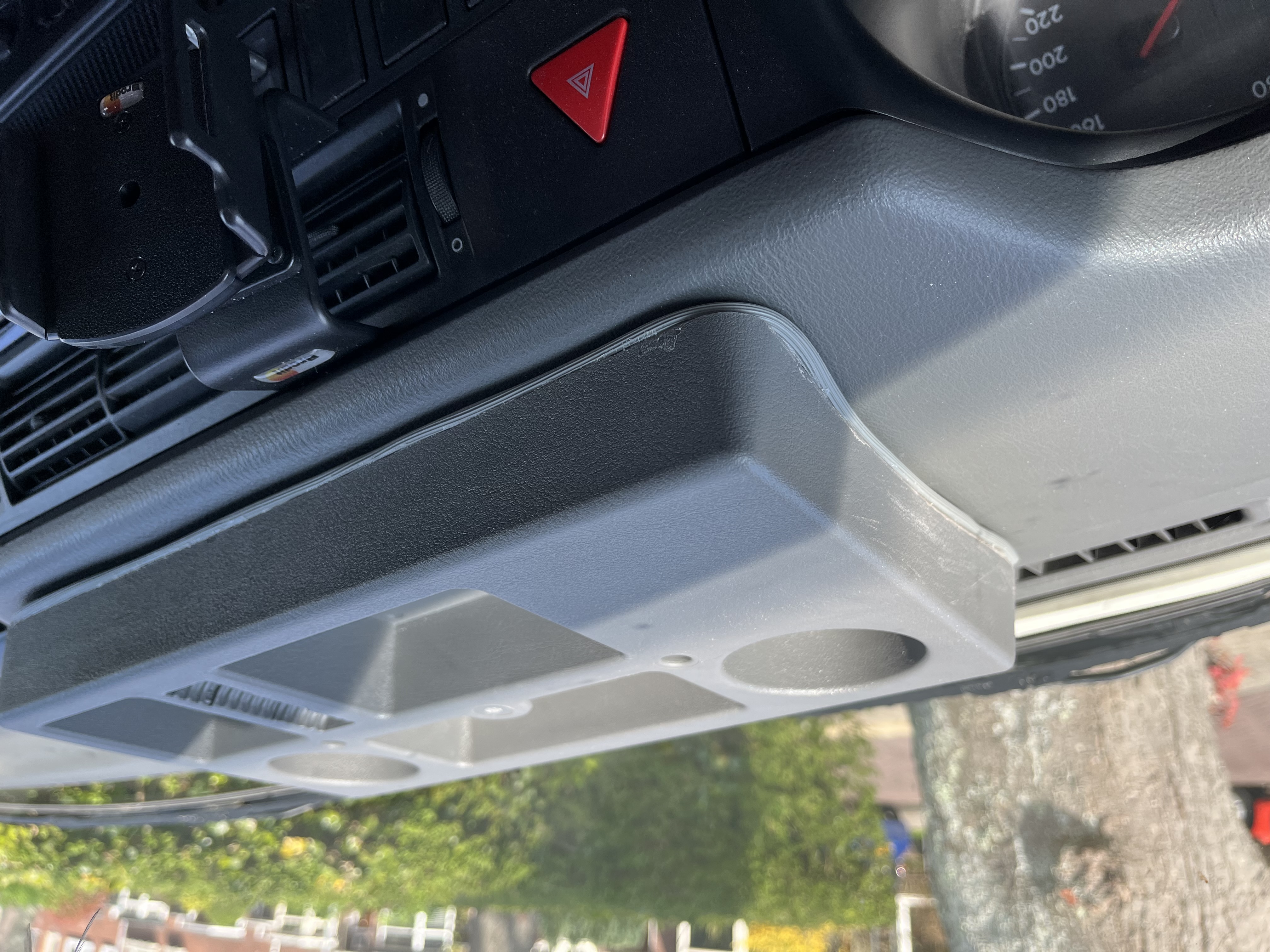 Ik wil zo’n koffiehouder op mijn dashboard (T4 2000) monteren. Nu bestaat er geen standaardbak maar heb ik er 1 op maat gemaakt. Ik krijg alleen geen schroef vast in het dashboard. Het lijkt wel 12 cm schuim ofzo.