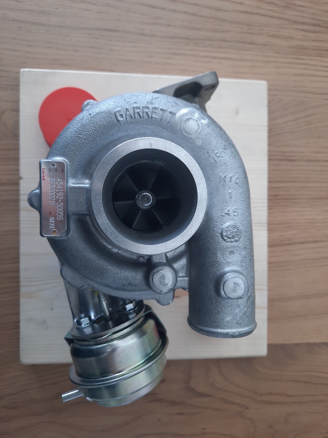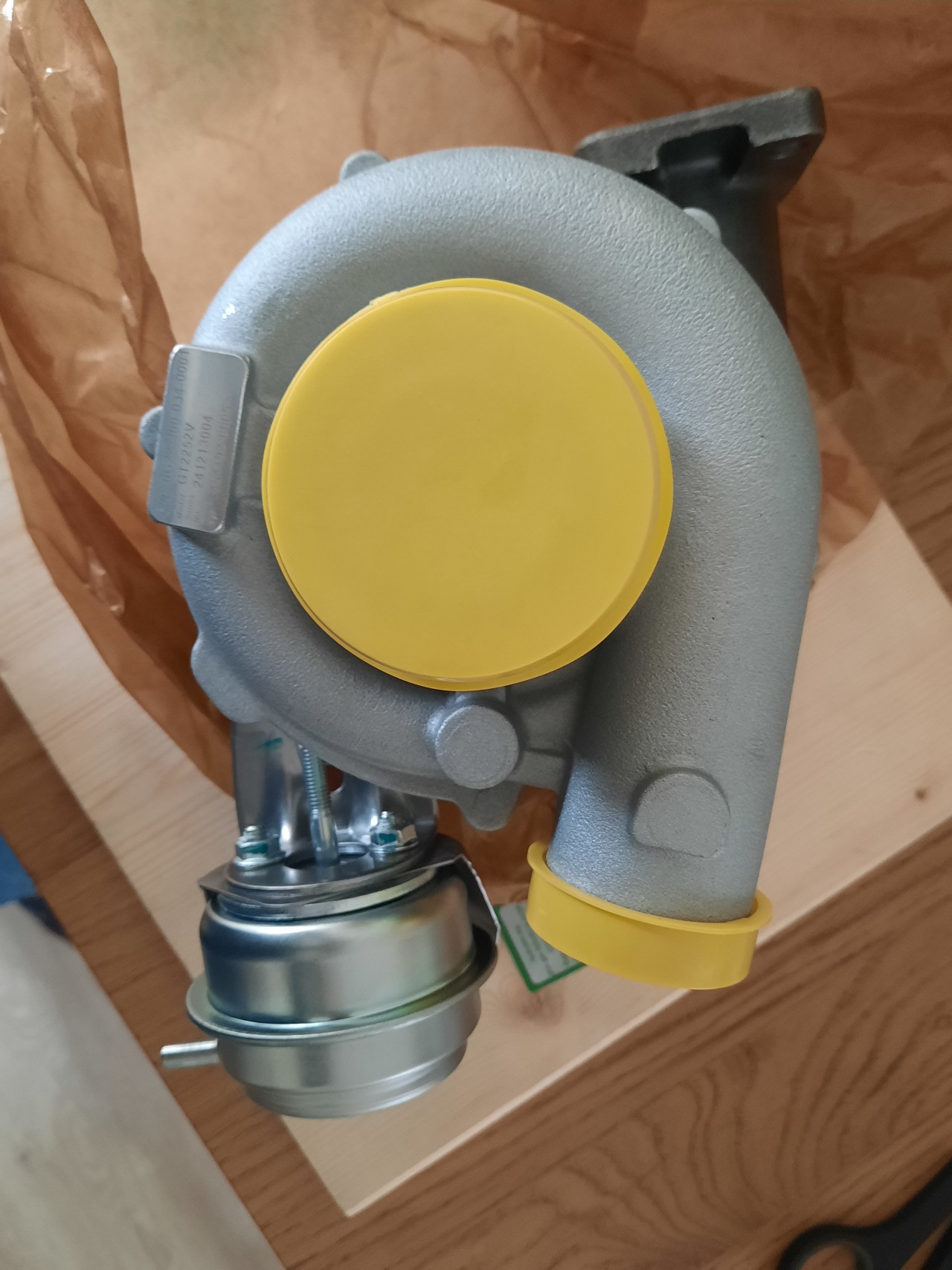 Inmiddels is de nieuw binnen, zie bijgaande foto's: Het betreft een nieuwe GARRETT turbolader, volgende week gaan we deze inbouwen....