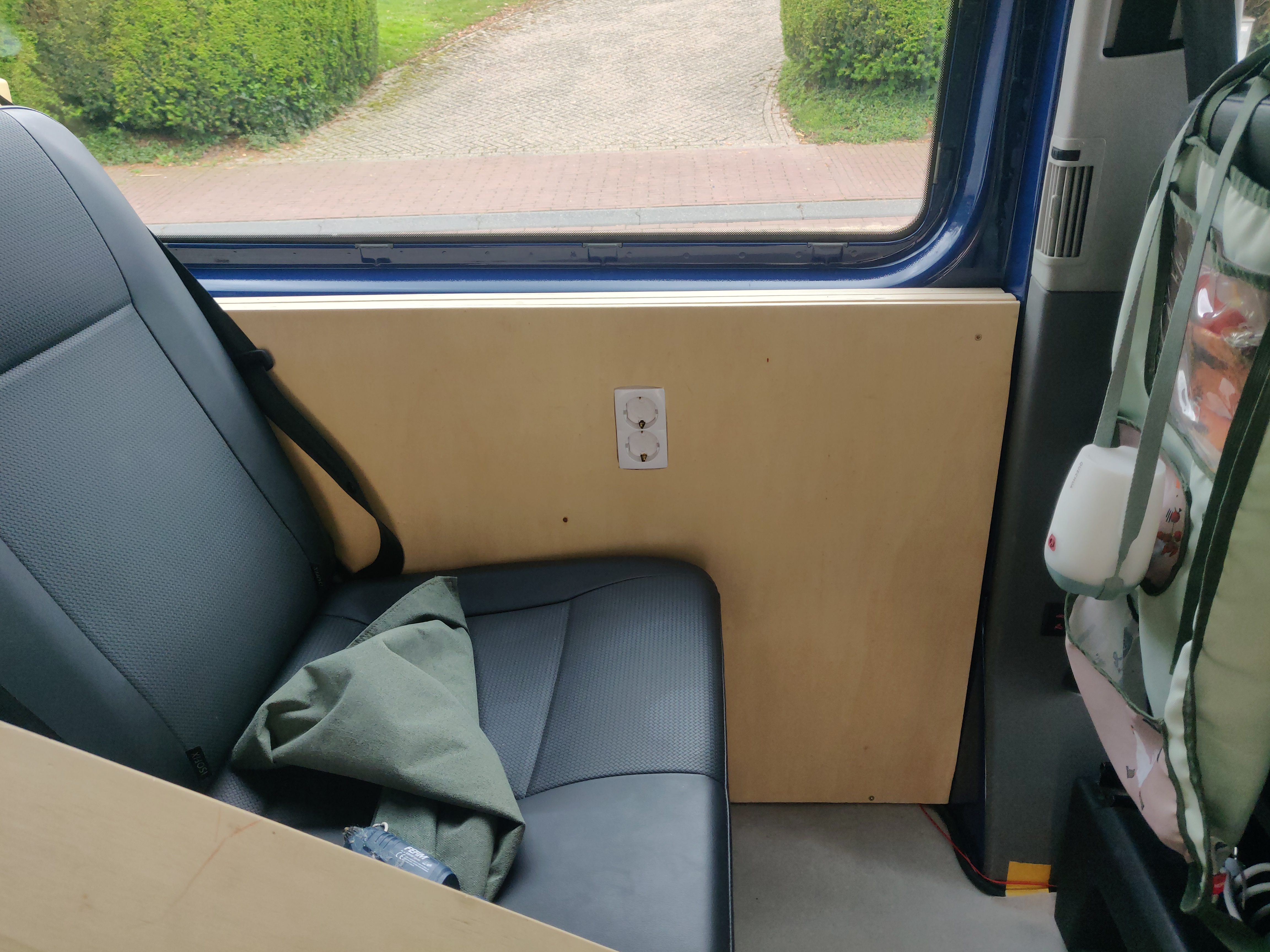 Stroom zit er nu in, alles geplaatst in zijwand achter bestuurder met 100Ah lithiumaccu onder bestuurdersstoel.