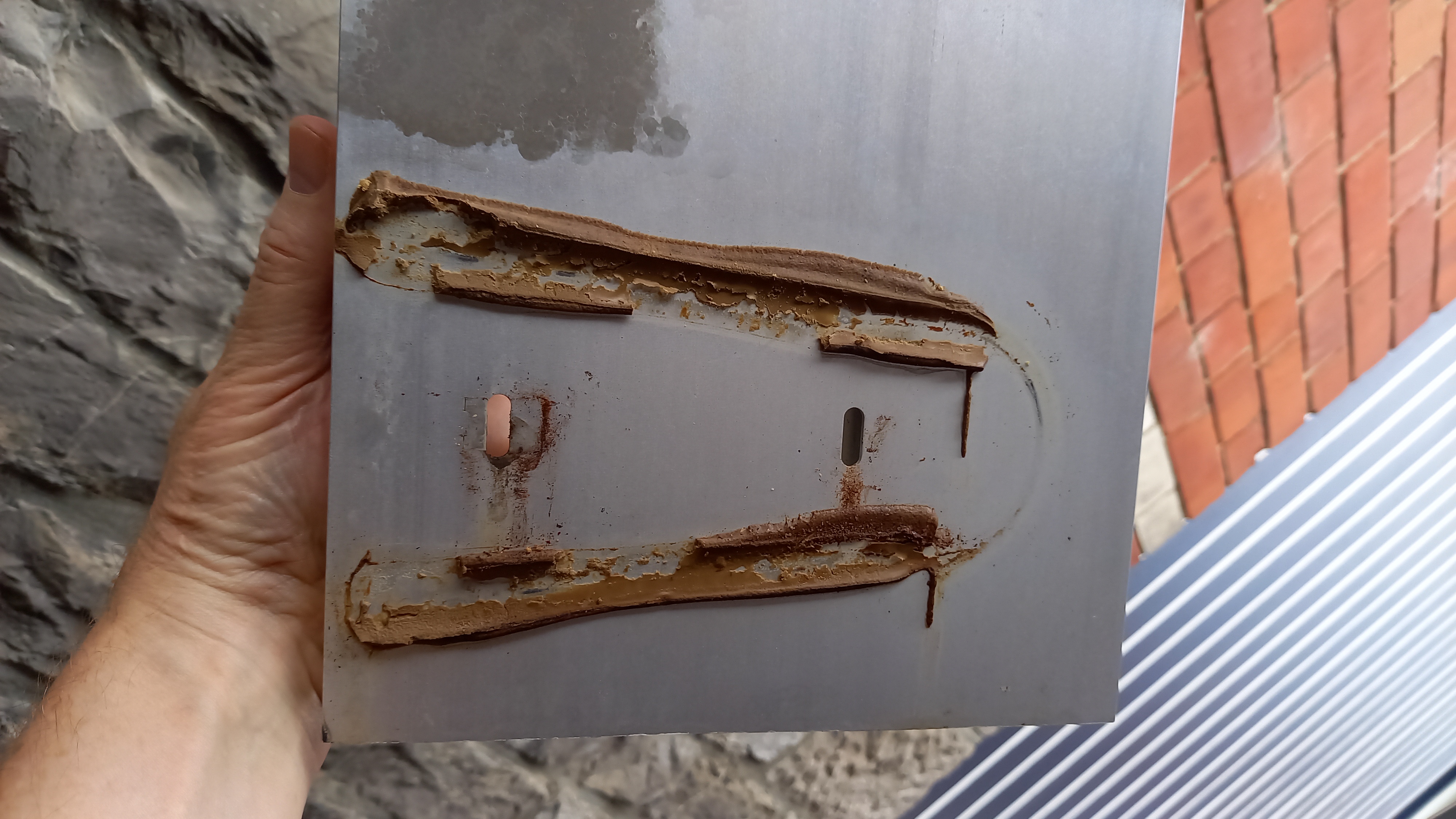 1) de verouderde "pasta" was heel dik aangebracht. Ergens logisch, het is de enige manier om de spleet tussen de ronde buis en de vlakke rug van de koelvin te dichten. Zie de foto's.