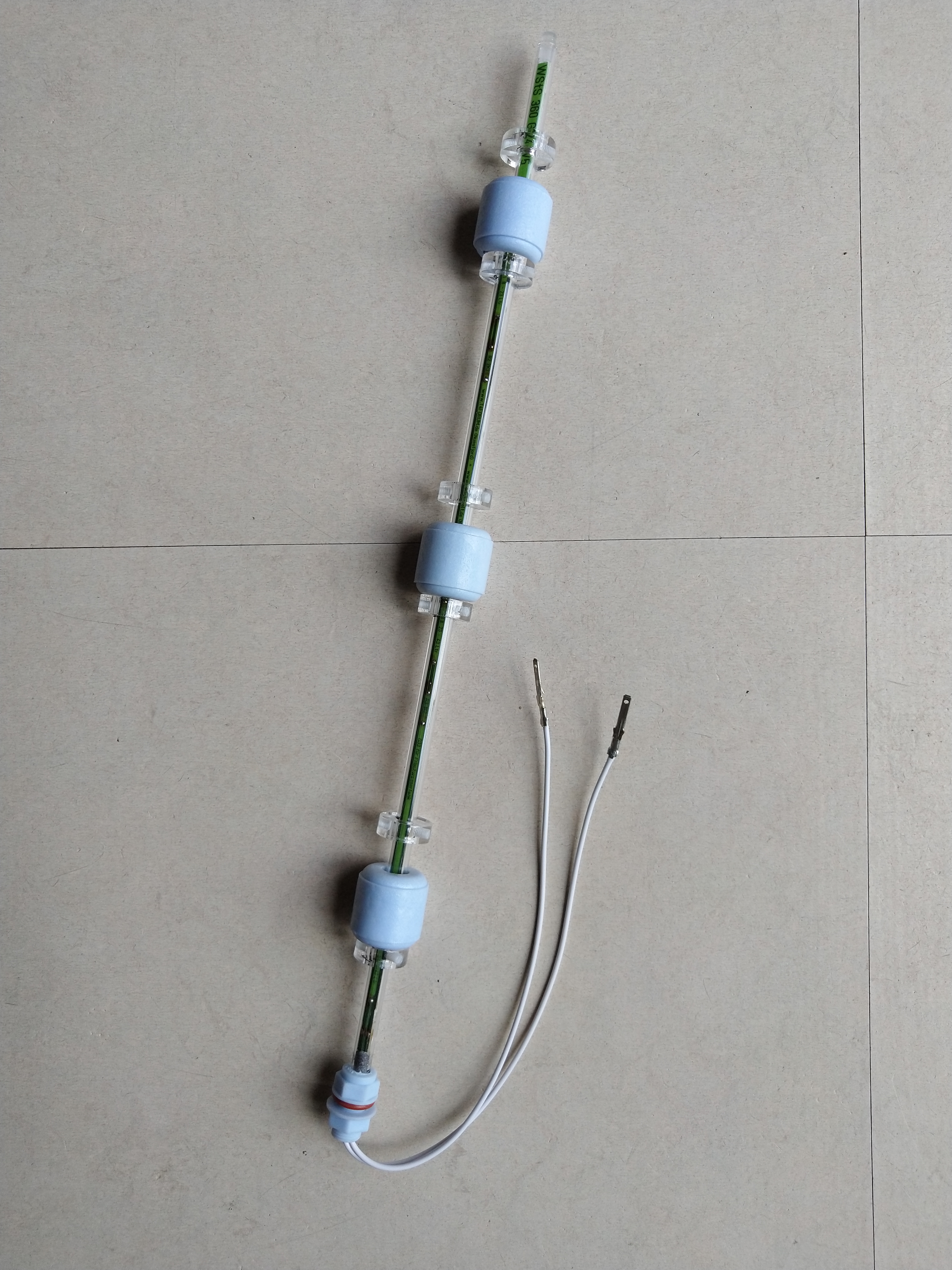Let wel, het gaat dus om een originele, maar kapotte schoonwatersensor van 360 mm voor de watertank rechts. Compleet op de stekker na.