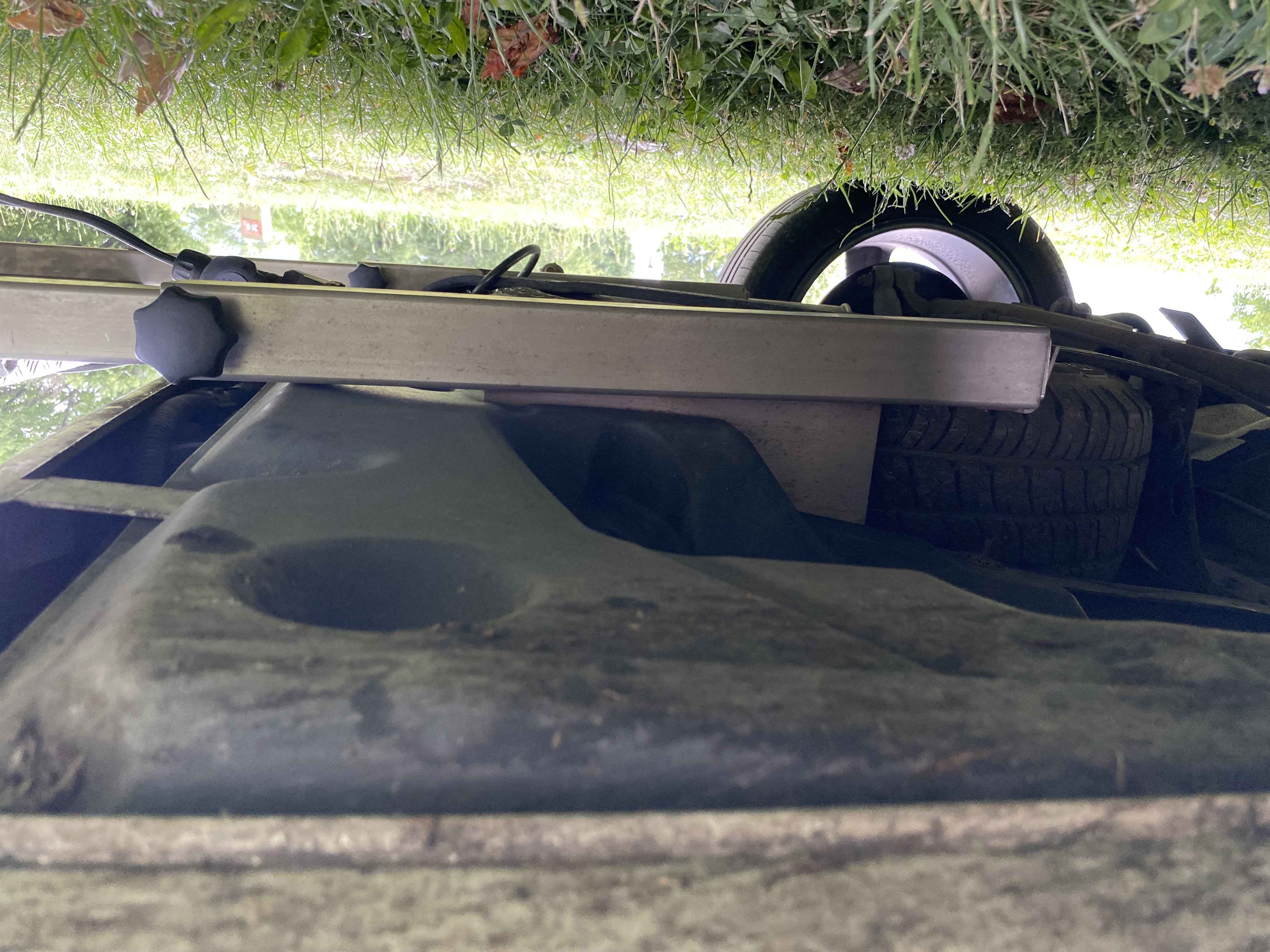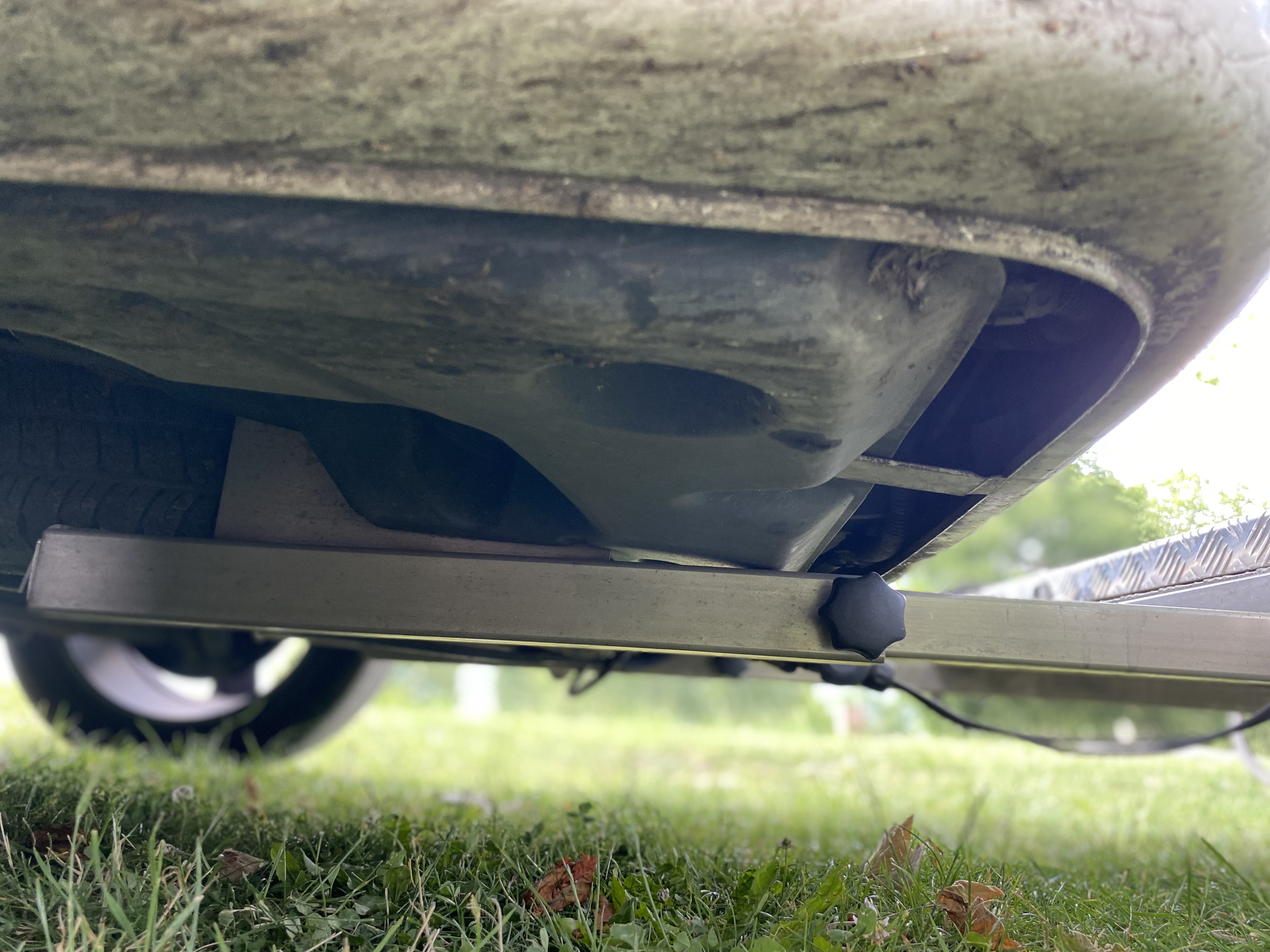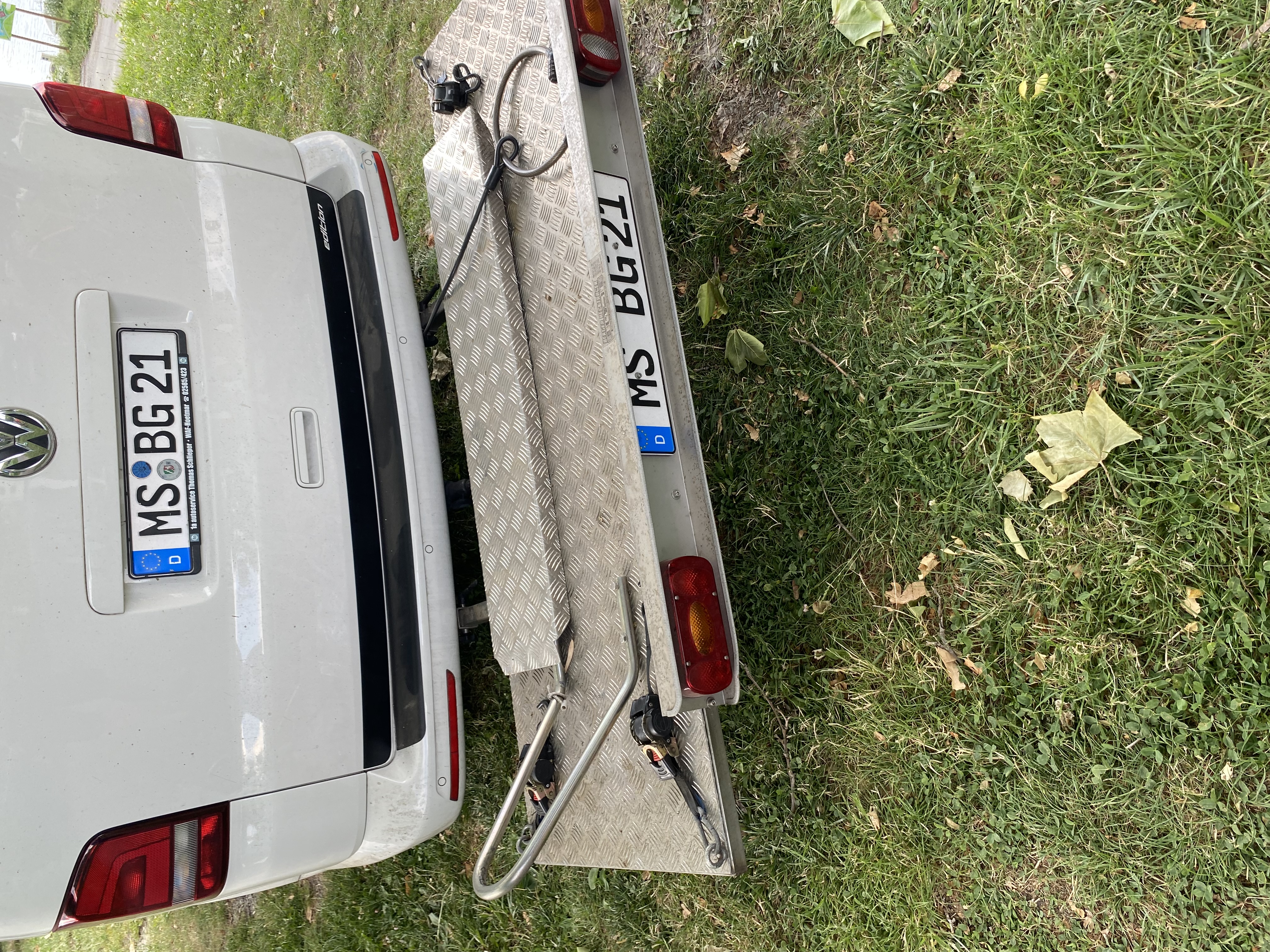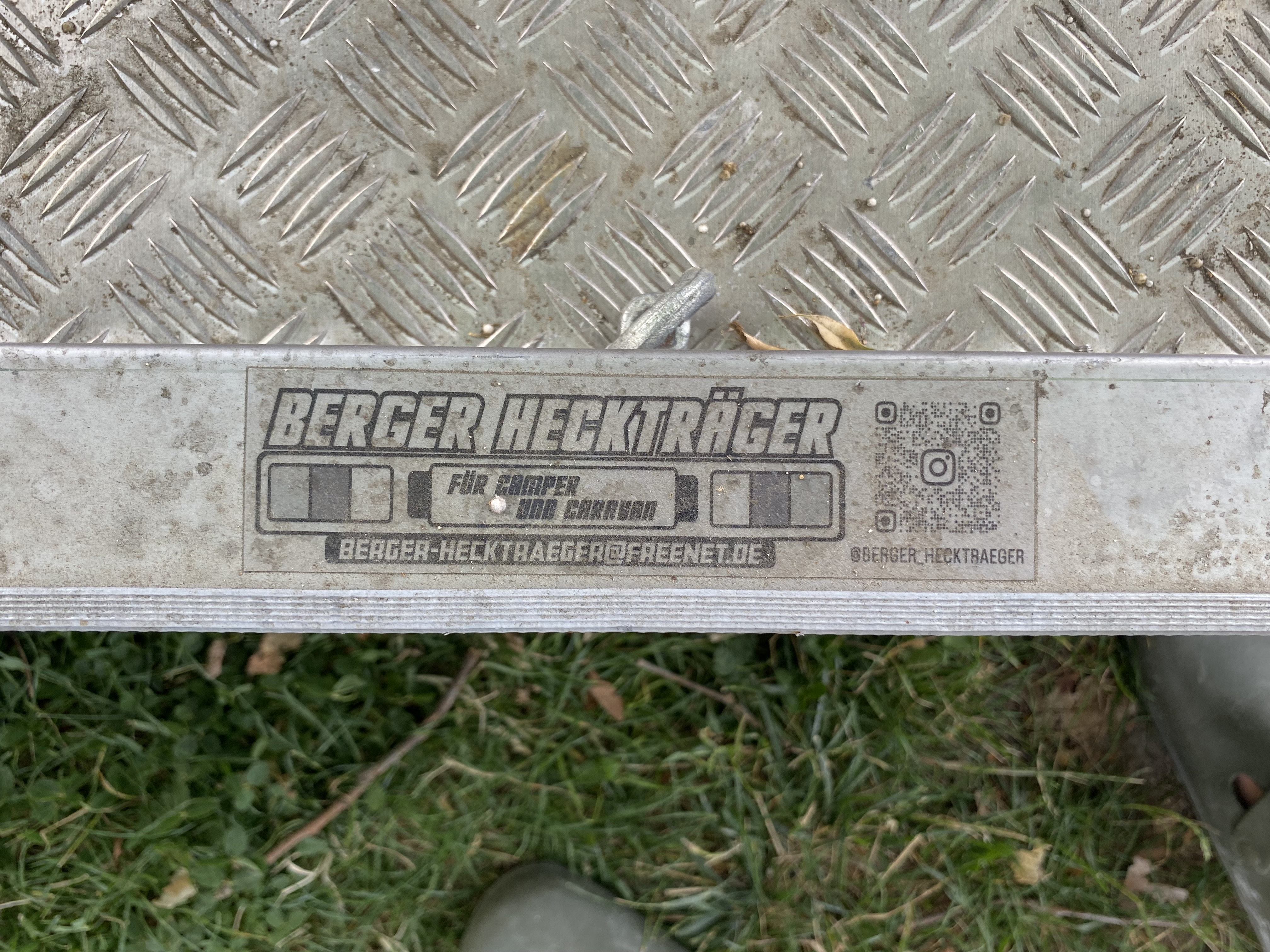 Op de camping zag een ik drager voor een lichte motorfiets.