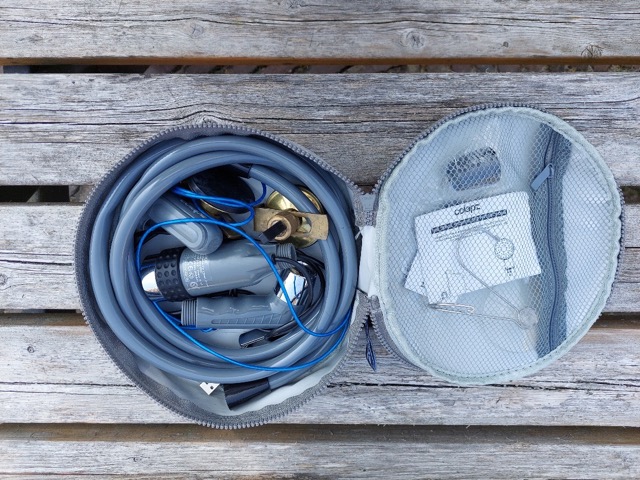 Ps het is opgevouwen een heel klein pakketje. De watertank neemt wel ruimte in, maar een reservetank met drinkwater is sowieso nuttig om bij je te hebben.