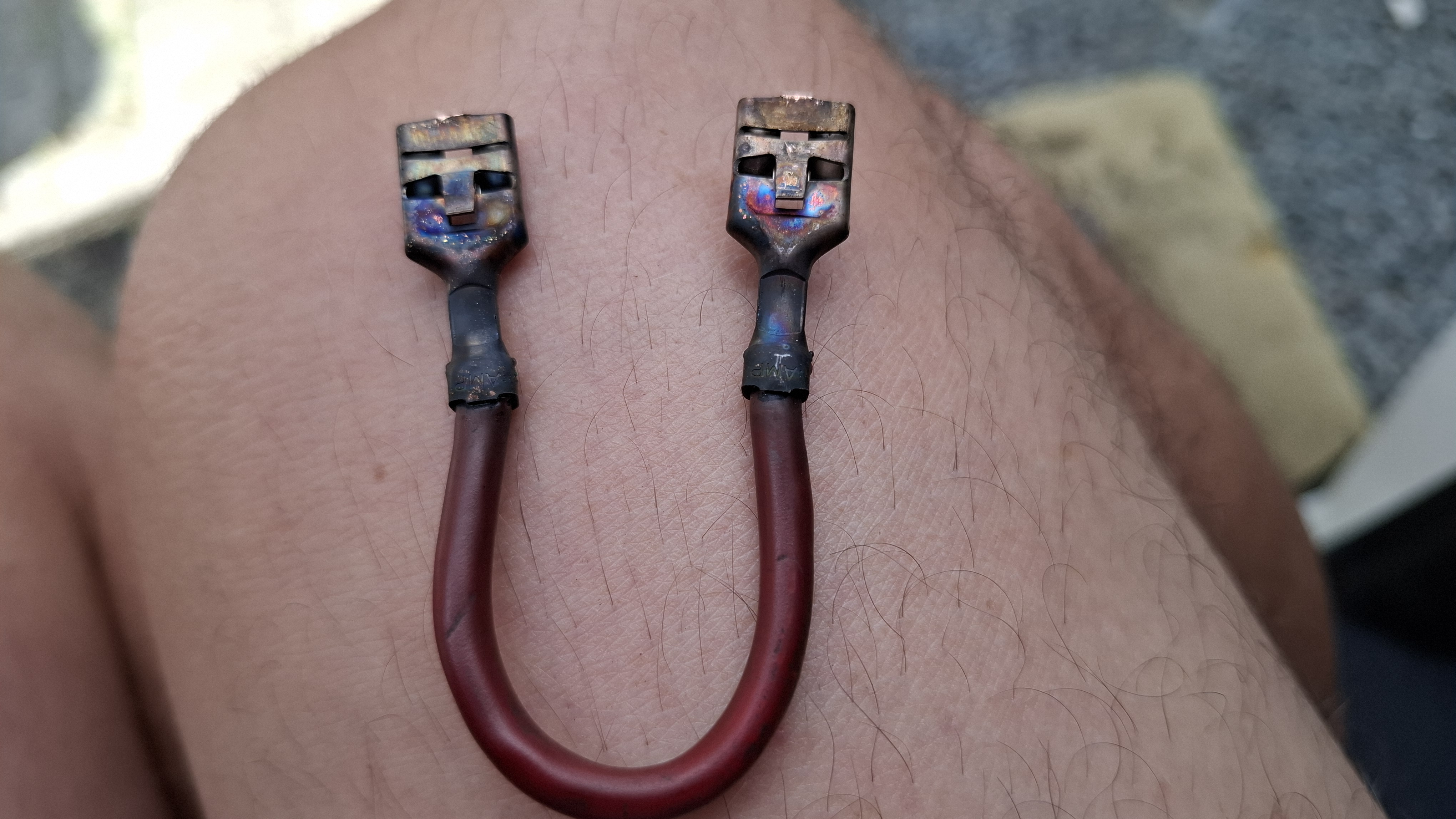 Wat blijkt? Het oude relais schakelt na 20sec af waarbij het bosch relais nog geschakeld blijft na 2min gestart te hebben... en waardoor de kabels heet worden.