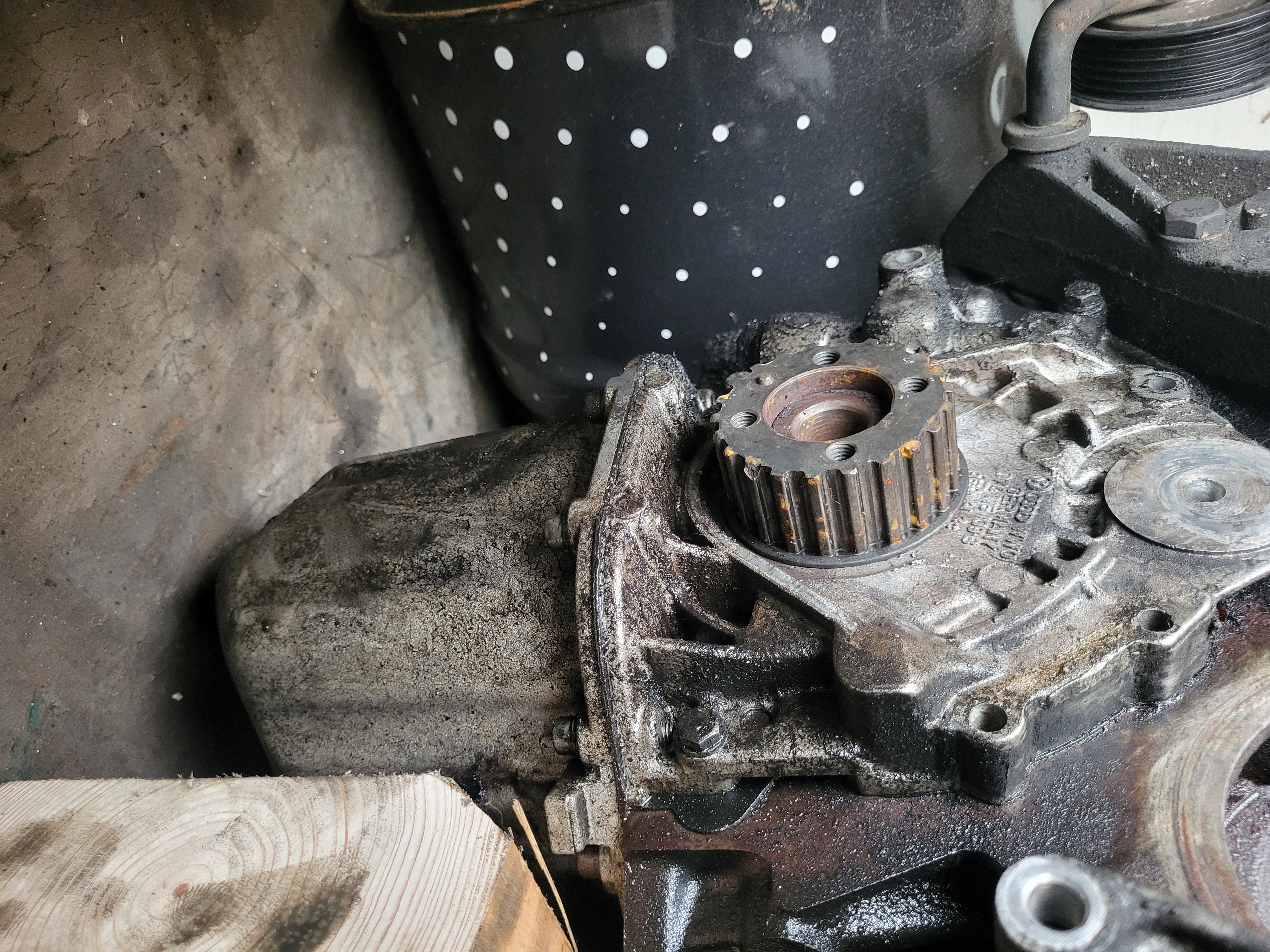 Ik zou dan ook meteen de krukas pakking aan die zijde meepakken en een nieuwe oliepomp monteren.