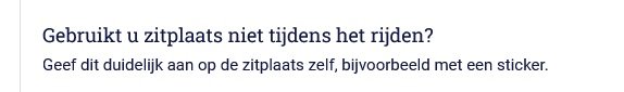 RDW keurt alleen zitplaatsen om te beoordelen of ze tijdens het rijden gebruikt kunnen worden (deugdelijke bevestiging van stoel/bank en gordels).SyncRoon schreef: 04 dec 2022, 23:39 Ja klopt. De vraag is dan ook meer of de RDW de zitplaats(en) goedkeurt voor gebruik tijdens rijden of enkel als zitplaats bij stilstand (met sticker niet gebruiken bij rijden)