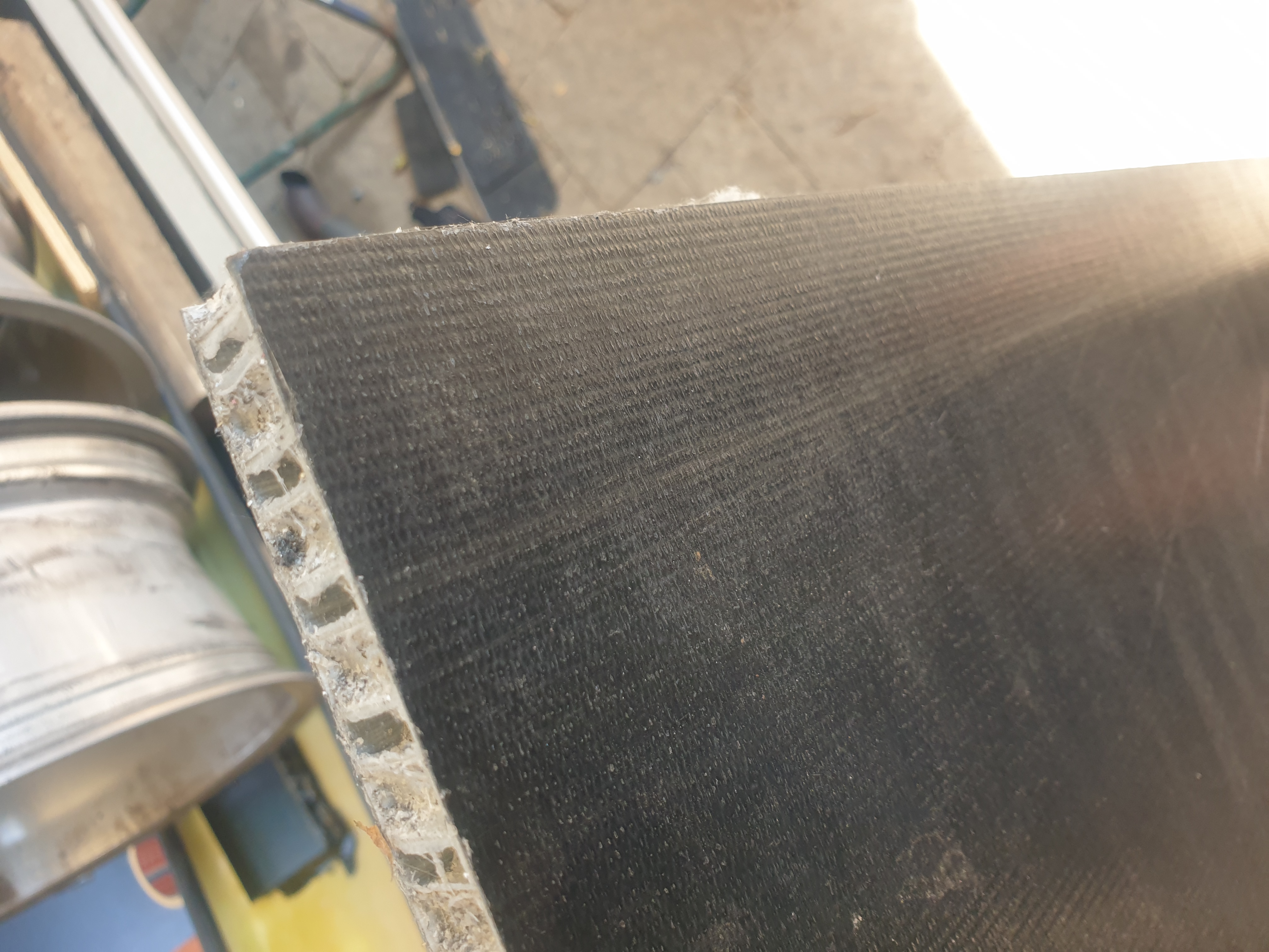 De porta potti wordt gewoon vervangen. Poepzakjes zijn voor de hond. Ben bezig de bedplank voor in het hefdak te maken. Kunstof honingraat en vezelversterkt 15mm dik. Weegt niks en prijs vergelijkbaar denk ik met goede multiplex. Rand afgewerkt met alu profiel. De gasveren komen eronder zodat de bodem over volle lengte steun heeft op de dakrand. Plank is 118x180. Voorin komen twee losse inzetstukken die ook als cabineverhoger werken. Anders zit ik met mijn hoofd tegen het tentdoek en een schuifluikje gaat dan ook niet werken. Aan binnenzijde is het hefdakframe bijna 4 cm lager dan oorspronkelijk plafond en ik heb draaiconsoles en verhoger gemonteerd.