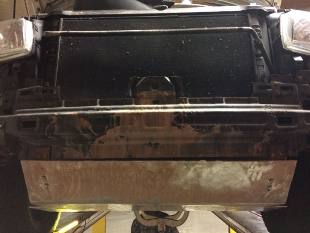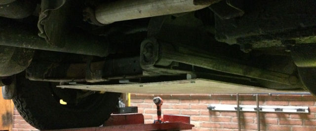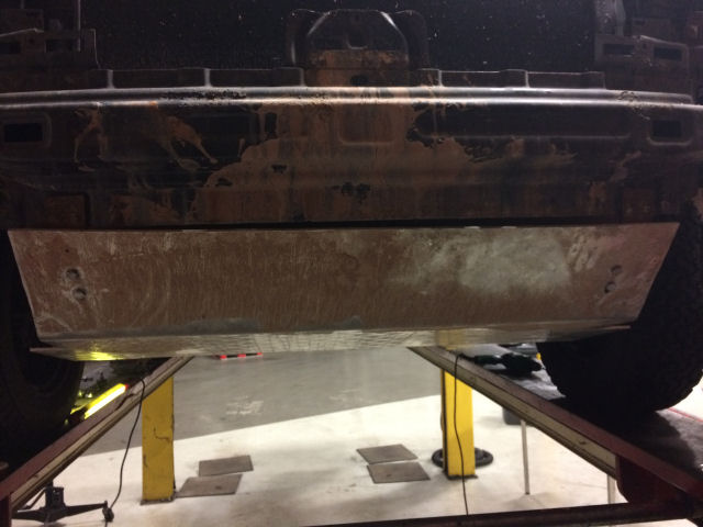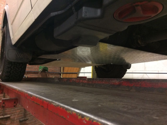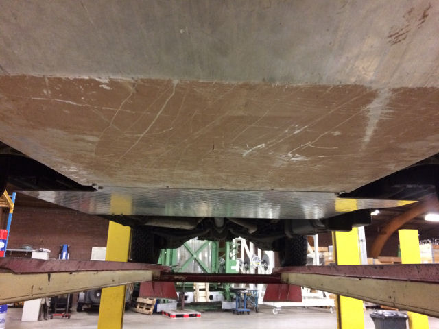 En hier de bodemplaat als bescherming voor de dieseltank en de aansluiting tussen beide platen.
