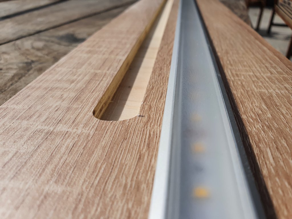 Netjes een gleuf er in gefreesd.