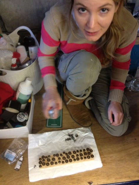 Zoals mijn gepriegel en detailgerichtheid: ik wilde de plafondclips in dezelfde kleur hebben als de neplederen randen. Na veel gezoek kwam ik erachter dat deze VWclips niet bestaan in chocoladebruin en dus... heb ik elke clip met de hand geschuurd, geverfd, weer geschuurd, geverfd en afgespoten met een beschermende vernislaag.