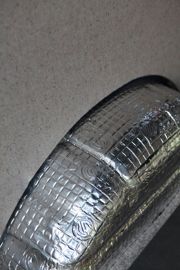 Toen we bij meneer Sam waren zijn we in de verleiding gekomen om toch zo'n mooie geluiddempende set van Silent coat te kopen.. We hebben eerst de wielkassen ermee bekleed..