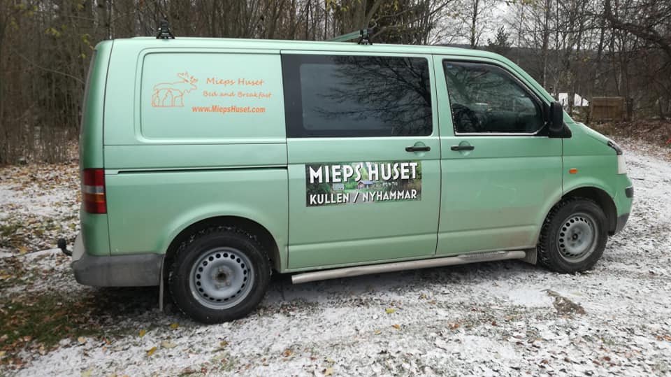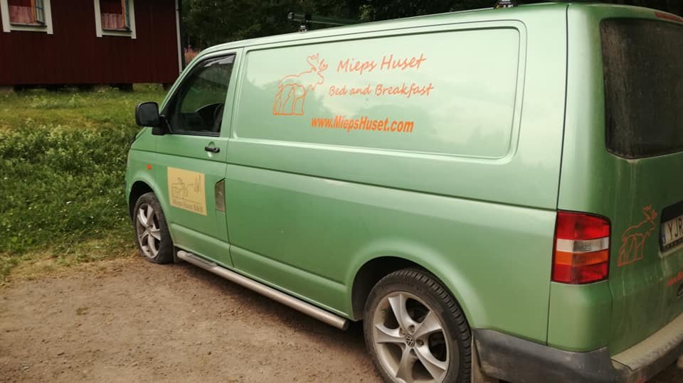Appeltjes groen busje in Zweden