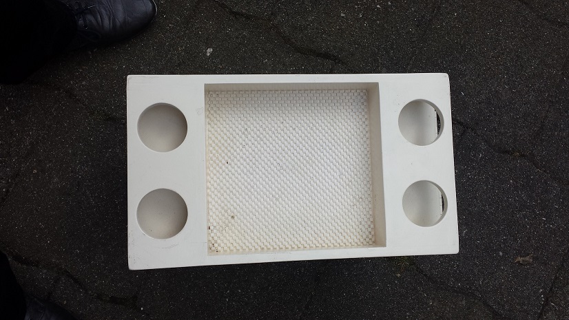 ook een trespaplaat 35 * 50 met twee klossen die passen in de bekerhouders hoort daarbij