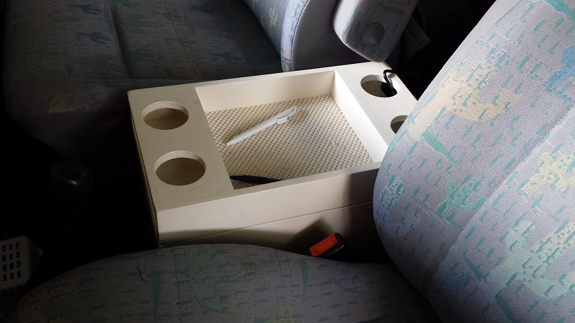 Zoals belooft hier de plaatjes van het kastje welke ik tussen de voorstoelen heb geplaatst