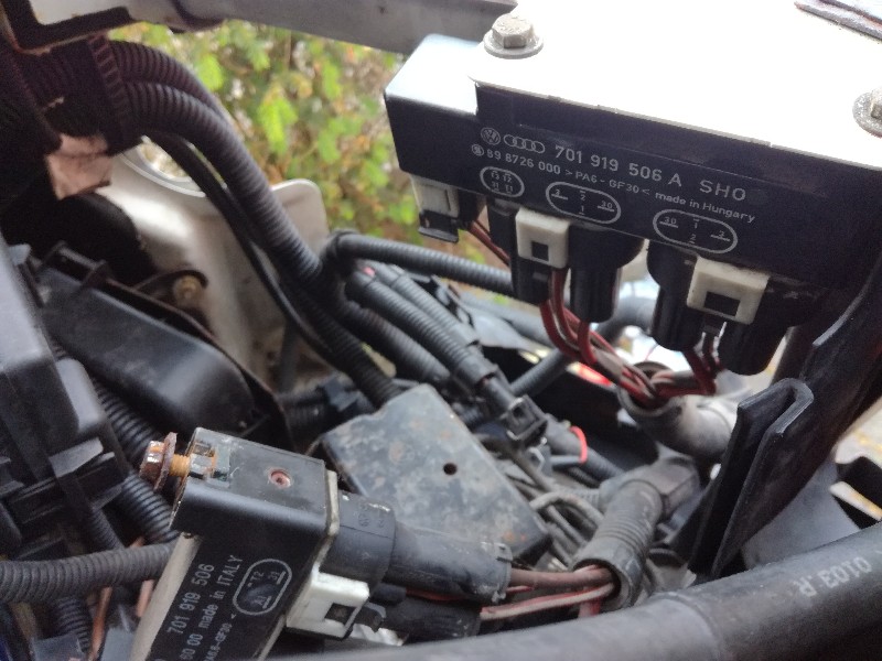 De kabelboom in de motorruimte was vandaag aan de beurt. Komt neer op het vervangen van de originele kabelboom door eentje uit een airco versie. Die laatste heeft wat meer aansluitingen (compressor, sensoren) en een andere aanstuurunit.