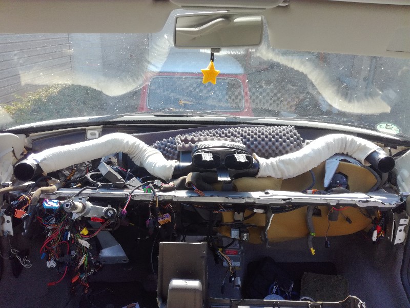 De interieurkabelboom heb ik op advies van Schippers naast de originele gelegd, en alleen de aircozaken van de nieuwe boom aangesloten.