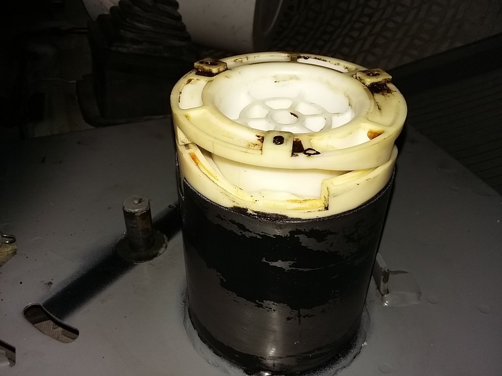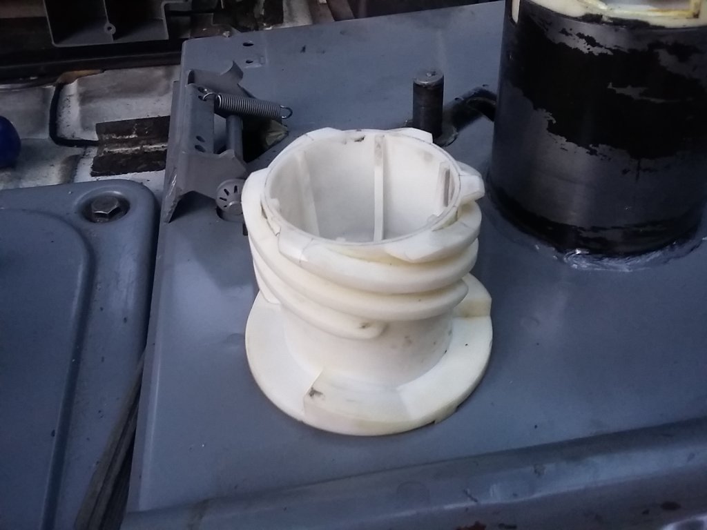 Bovenste foto is vd kapotte plateau, (helaas onderstekop geplaatst) je ziet dat er een soort ring tussen bovenste en onderste deel zit die hier zichtbaar is. Bij de goed werkende bestuurdersstoel (onderste foto) zie je die ring aan liggen met het onderste deel. Ook is te zien dat de twee delen dichter op elkaar zitten bij het niet functionerende plateau (dopsleutel geplaatst voor vergelijk) er zit dus echt iets niet goed lijkt me. Alleen geen idee wat.