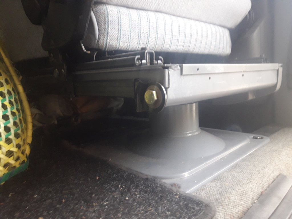 De stoelen in onze bus draaien allebei linksom, wellicht al eens aangepast. Kwam er alleen achter dat er nog een reden waarom ze niet zomaar uitwisselbaar zijn: de bevestiging van de gordel...