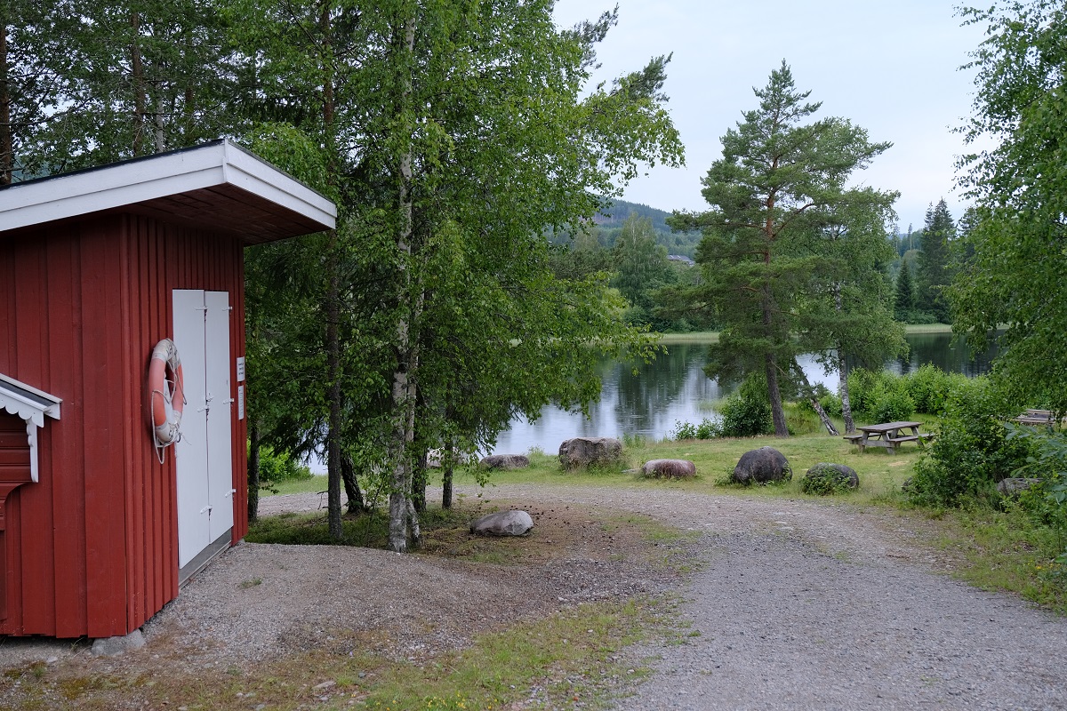 Te Elverum waren we het al beu om door elkaar gerammeld te worden en zijn we via geasfalteerde kronkelwegen richting Birkerbeinervegen gereden. Dat waren behoorlijk wat kilometers, en helaas waren we op een lange saaie weg terecht gekomen, met links een rivier en spoorlijn, en rechts een "bergrug" zonder wegen. Kort voor Evenstad vonden we eindelijk een rustig plaatsje voor de nacht. Bleek dat enkele honderden babypadjes en een paar duizend muggen daar ook logeerden. En de regenwolken ook.