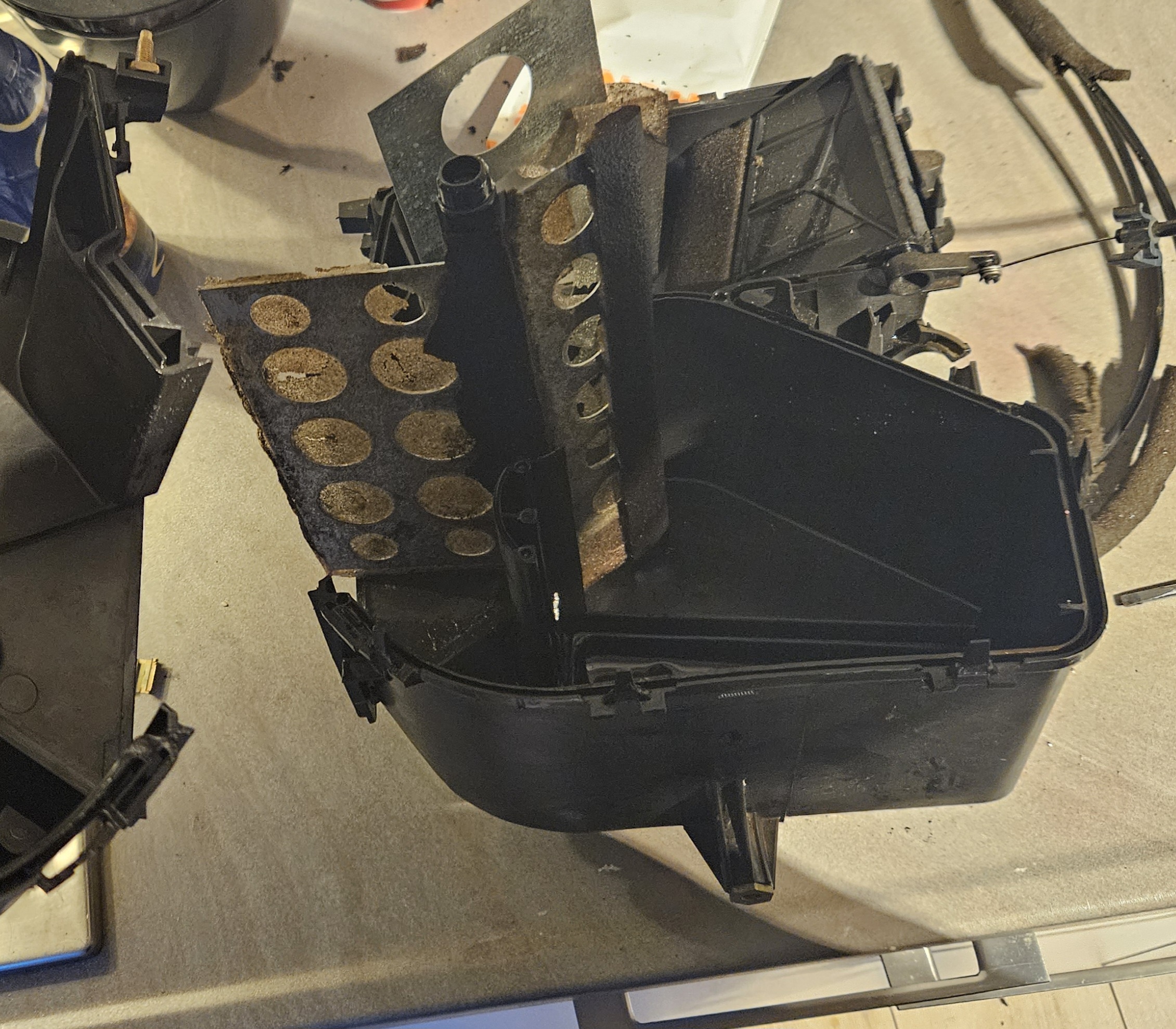 Verder wel een heel herkenbaar beeld, al die losse stekkers en brokken isolatie. Ik heb inderdaad ook van de gelegenheid gebruik gemaakt om de zaak achter het dashboard eens goed te reinigen van al het stof dat daar in de loop der jaren was neergedaald.