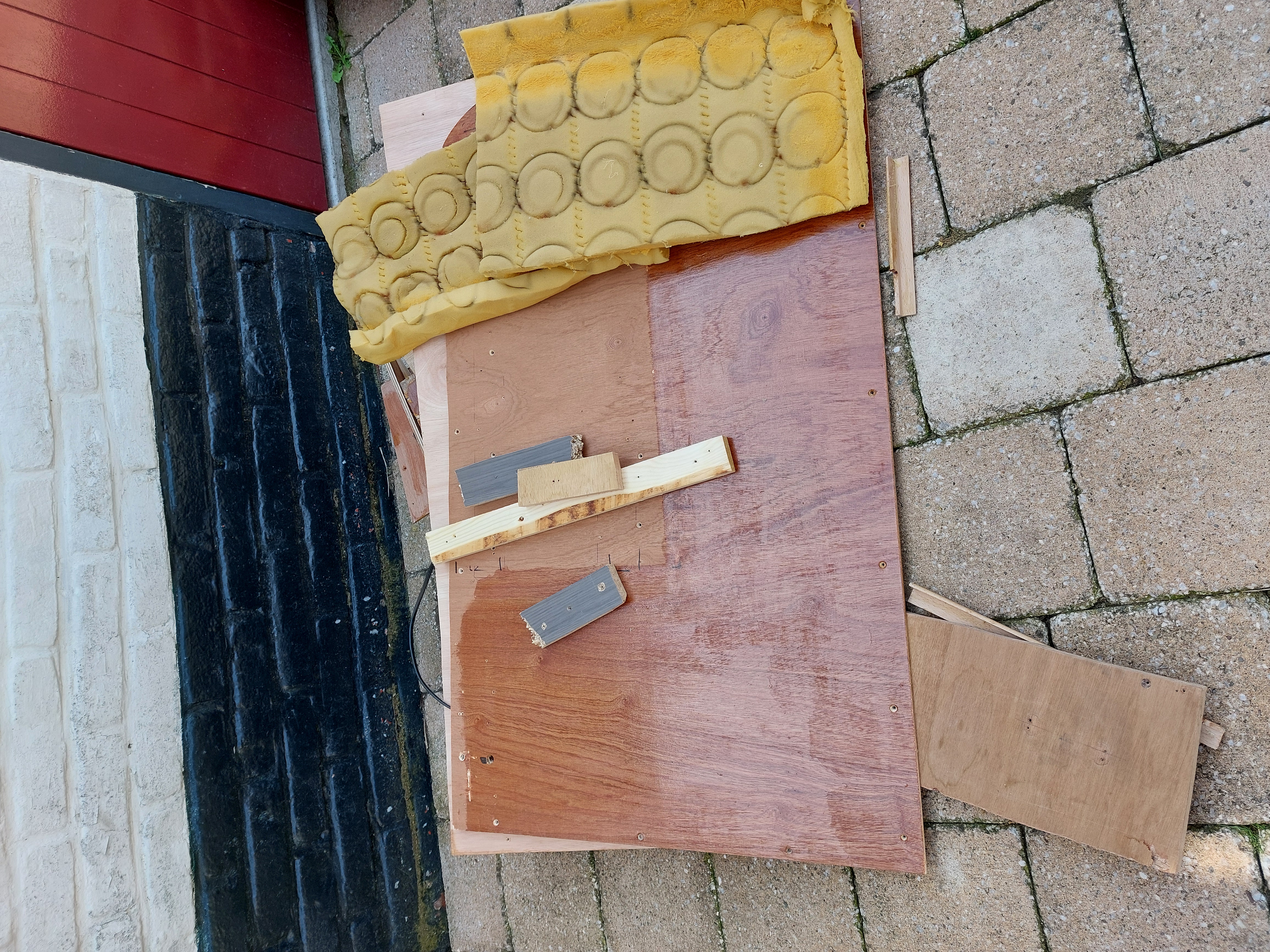 Vandaag een nieuw paneeltje voor de schuifdeur gemaakt en die bekleed met skai .