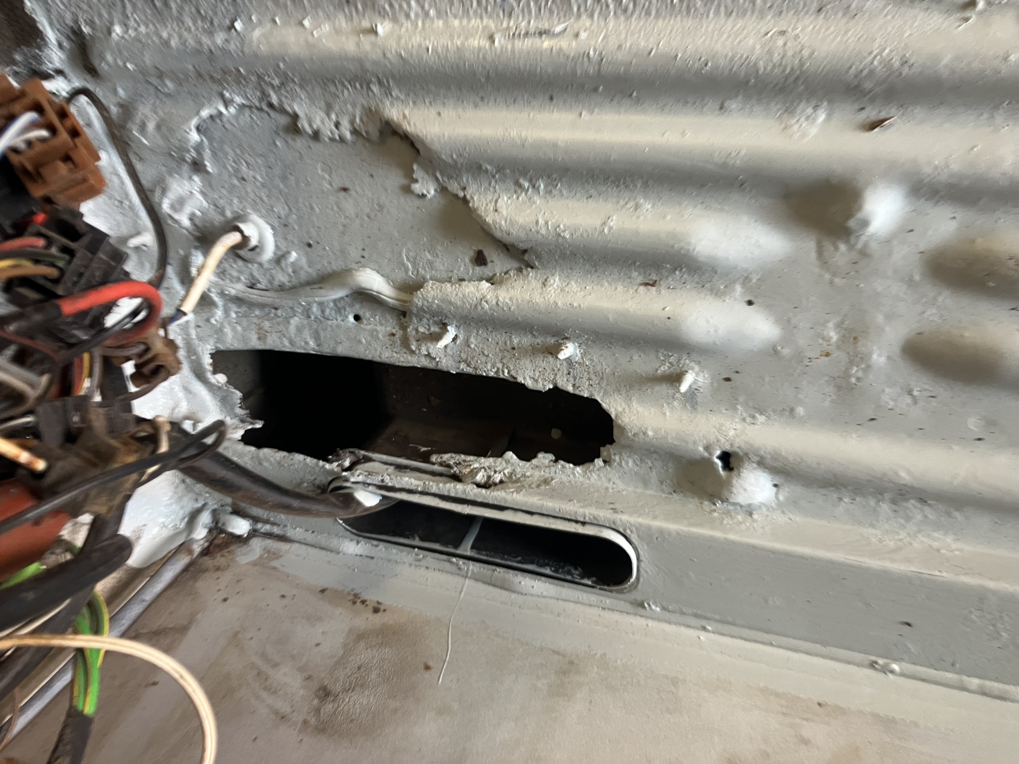 Vraagje over gat onder de koelkast: bij mij is het gewoon een open ovaal gat, alleen hoort daar een aan-afvoer te zitten voor de koelkast dacht ik.