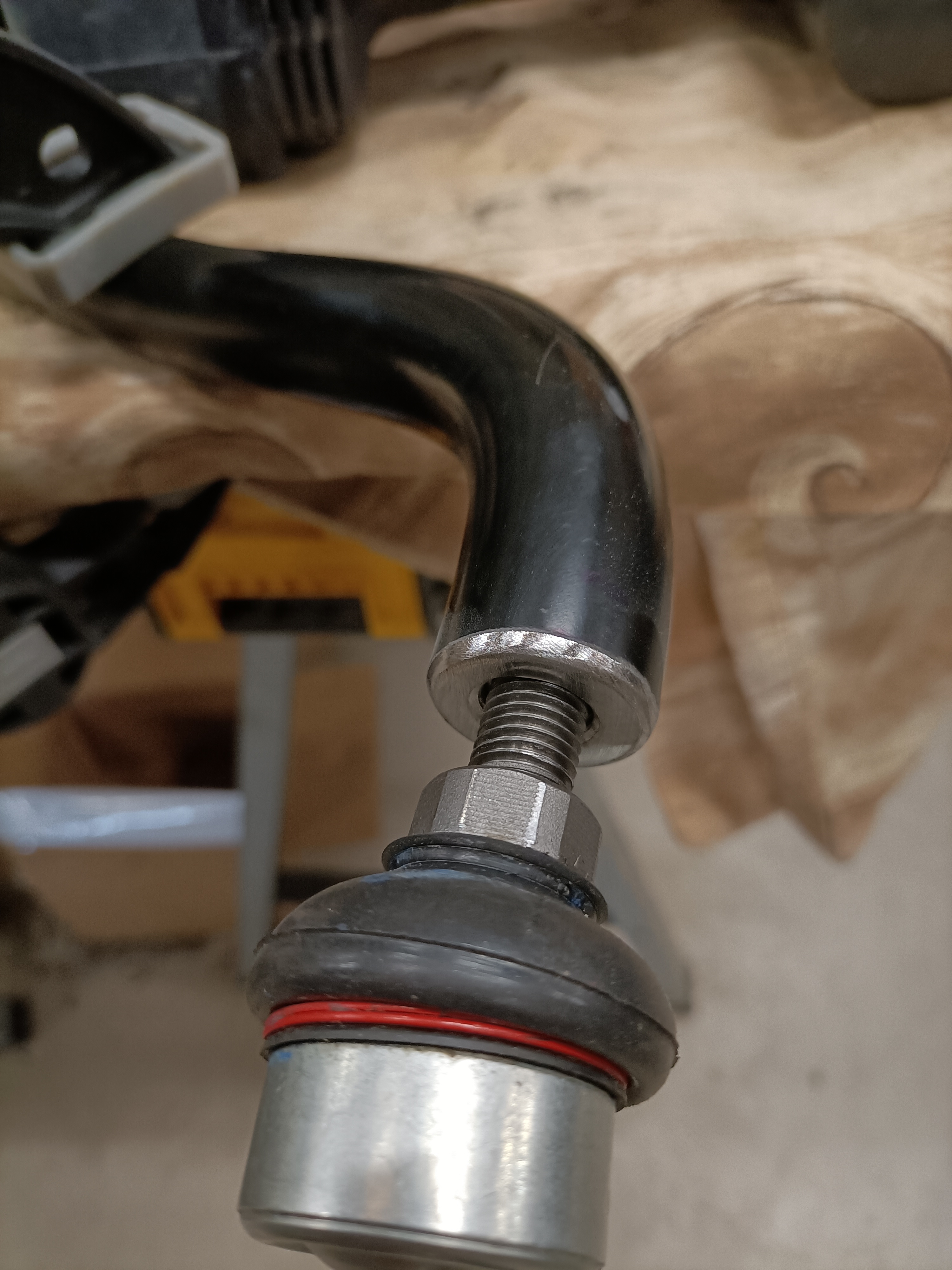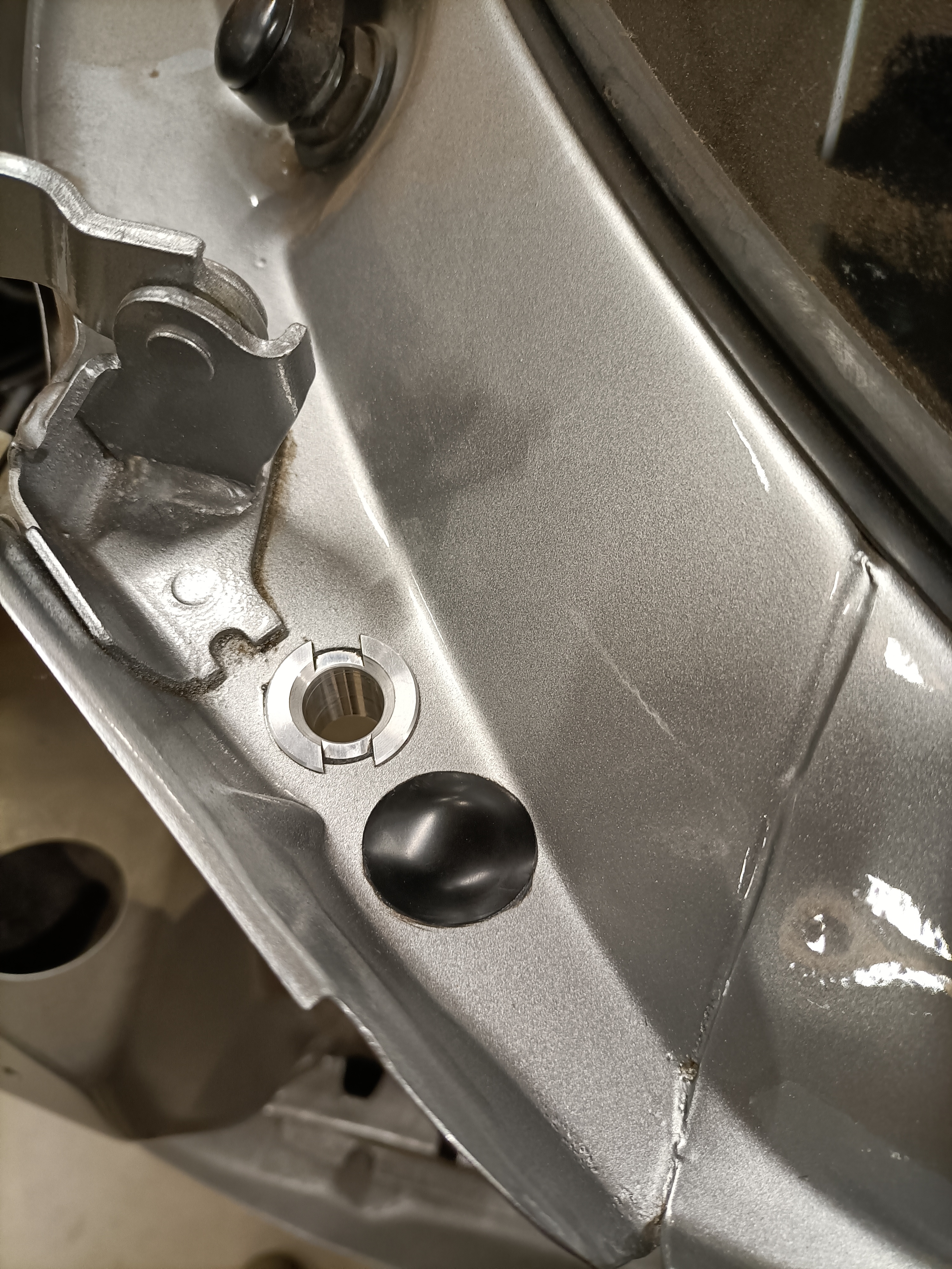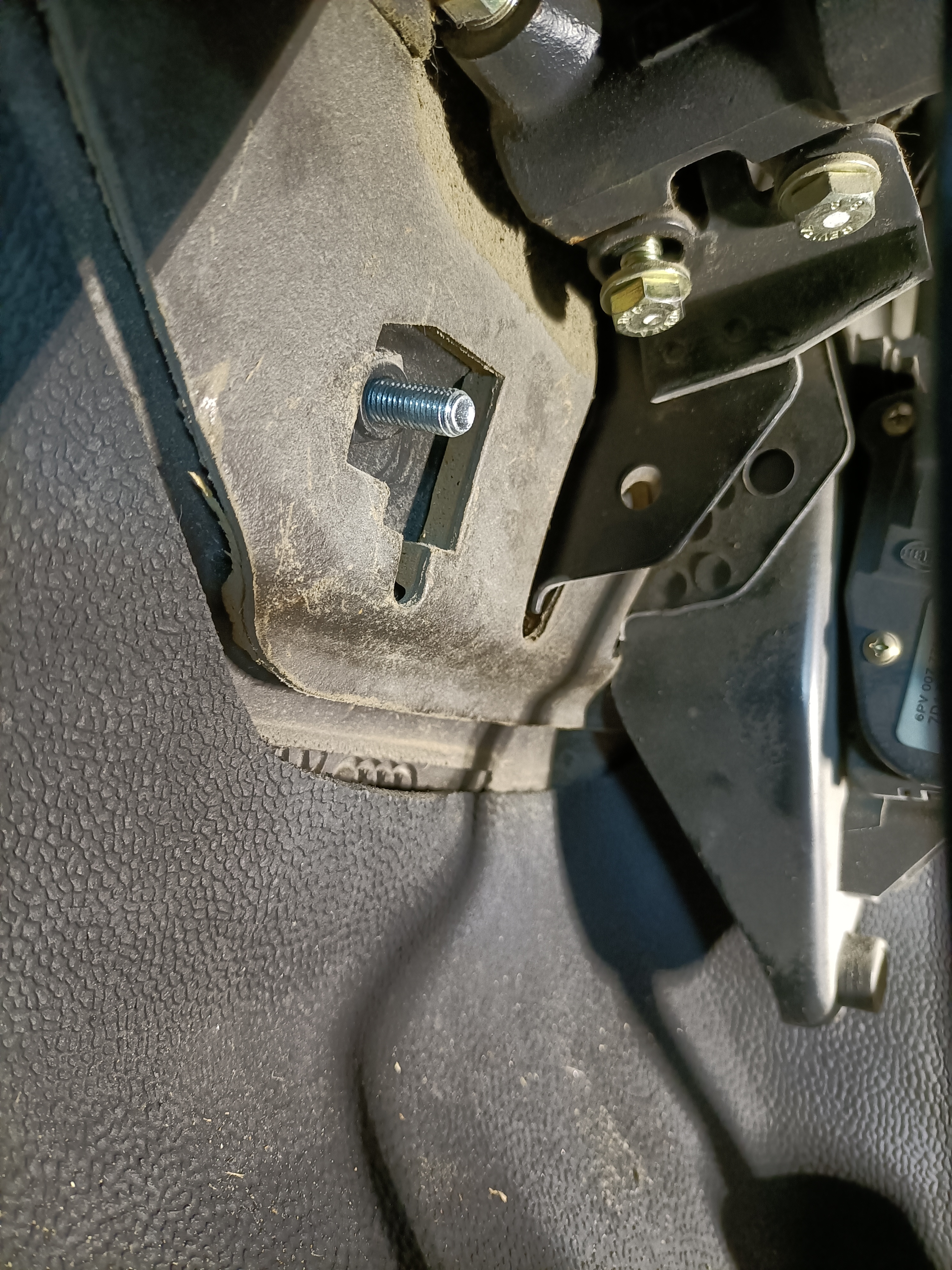 Aan de binnenzijde van de auto steekt nu de bout uit.