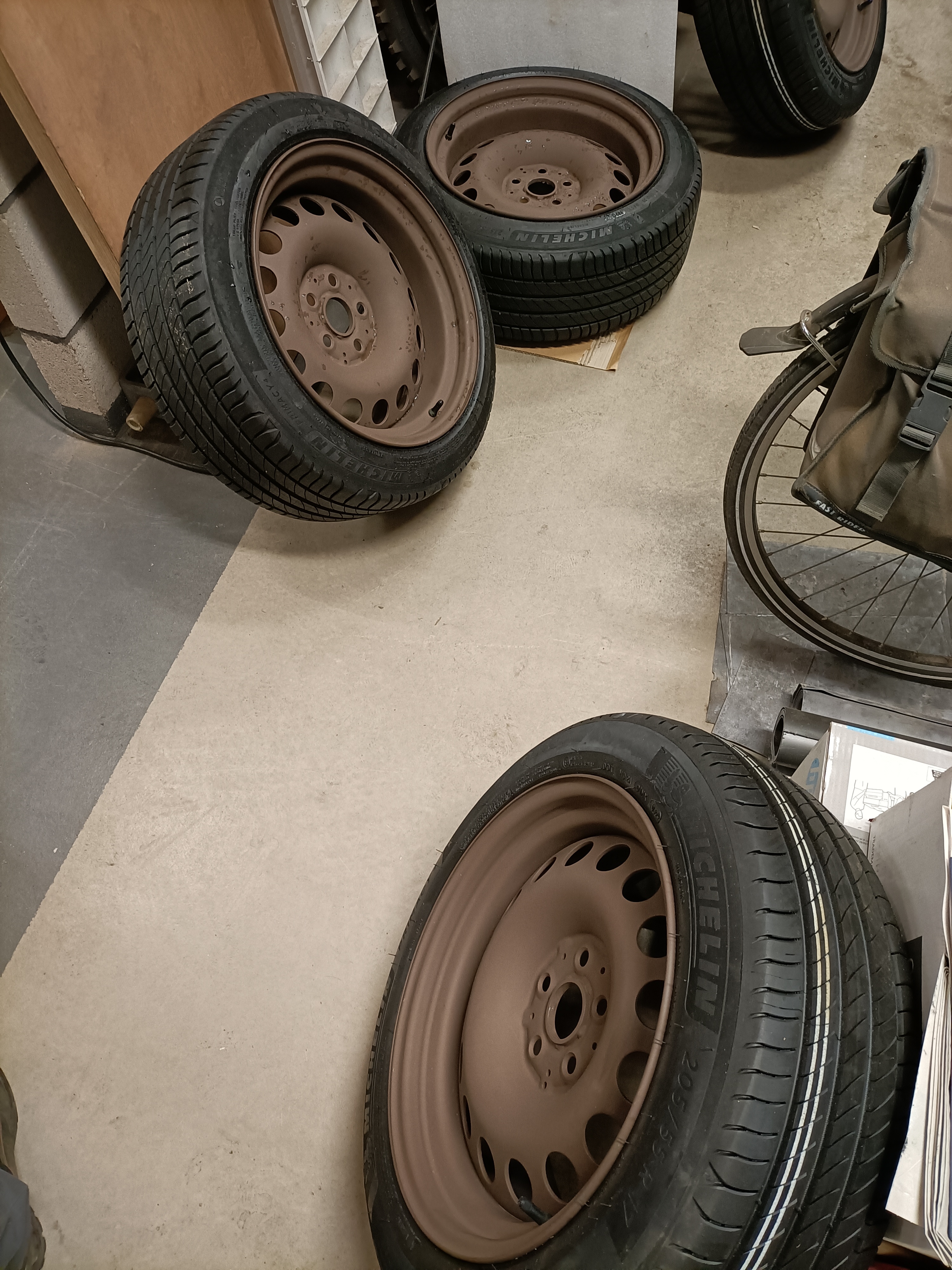 De zwarte drager heb ik toch maar gestraald, in de Brunox gezet en weer gespoten met matte verf.