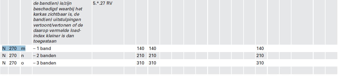 Wil je dus een loadindex van 95 / 690kg rijden mag je aslast niet meer zijn dan (690x2) 1380kg. Voor en achter is dat dan samen 2760kg maximum massa.
