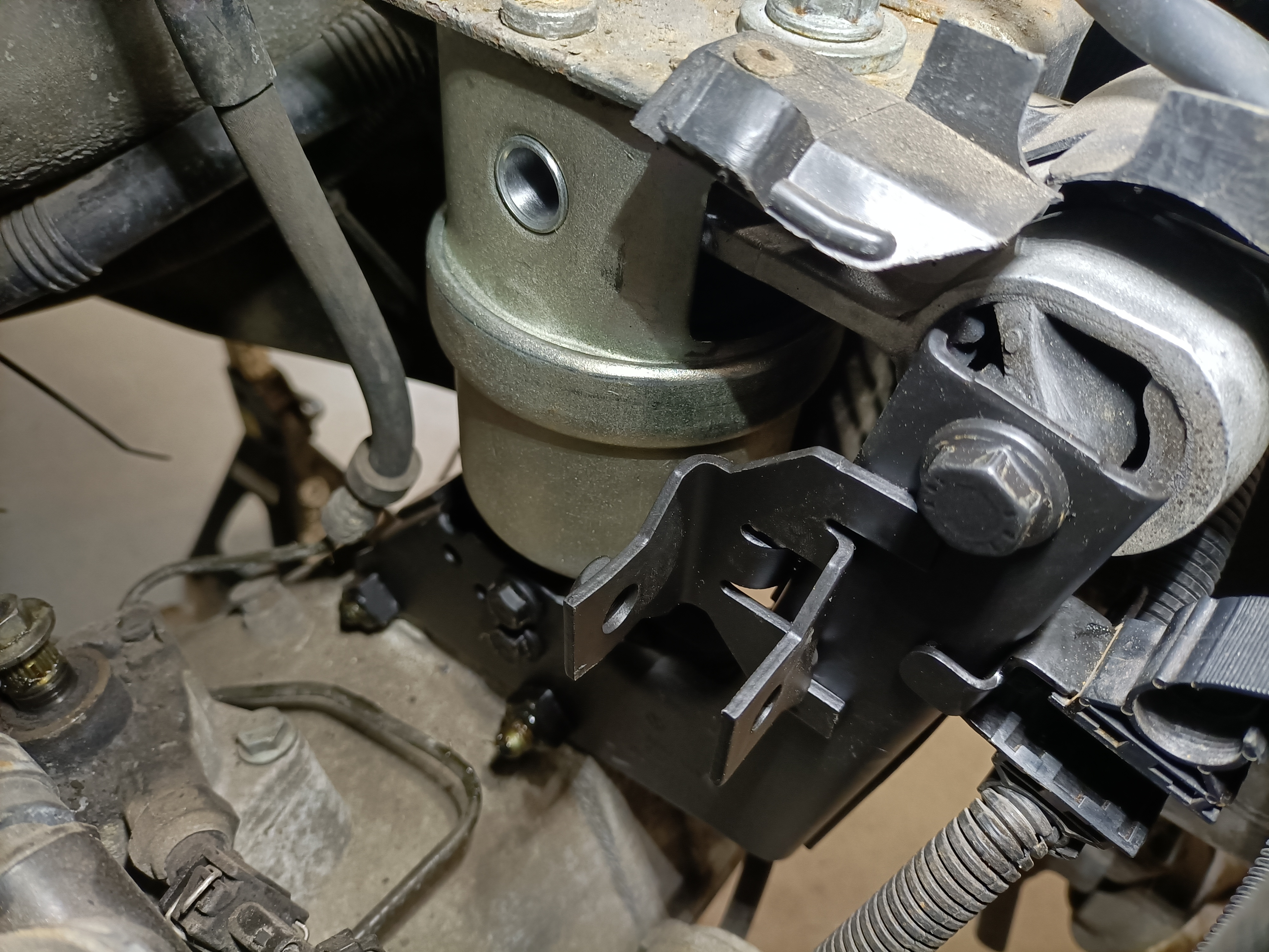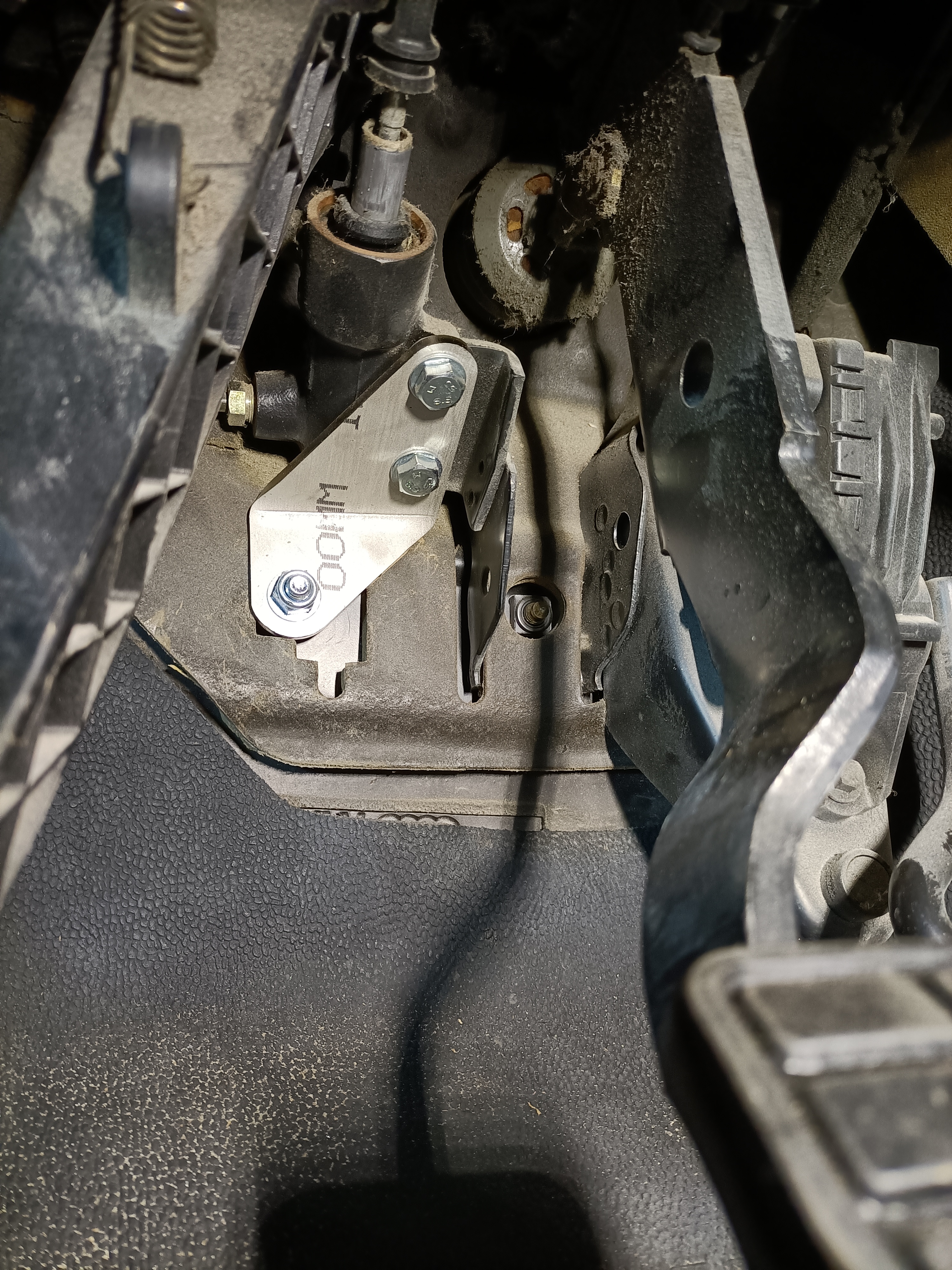 Het verstevigings plaatje kun je nu vastdraaien, aan deze bout, en aan de orginele boutverbindingen van de koppeling cilinder.