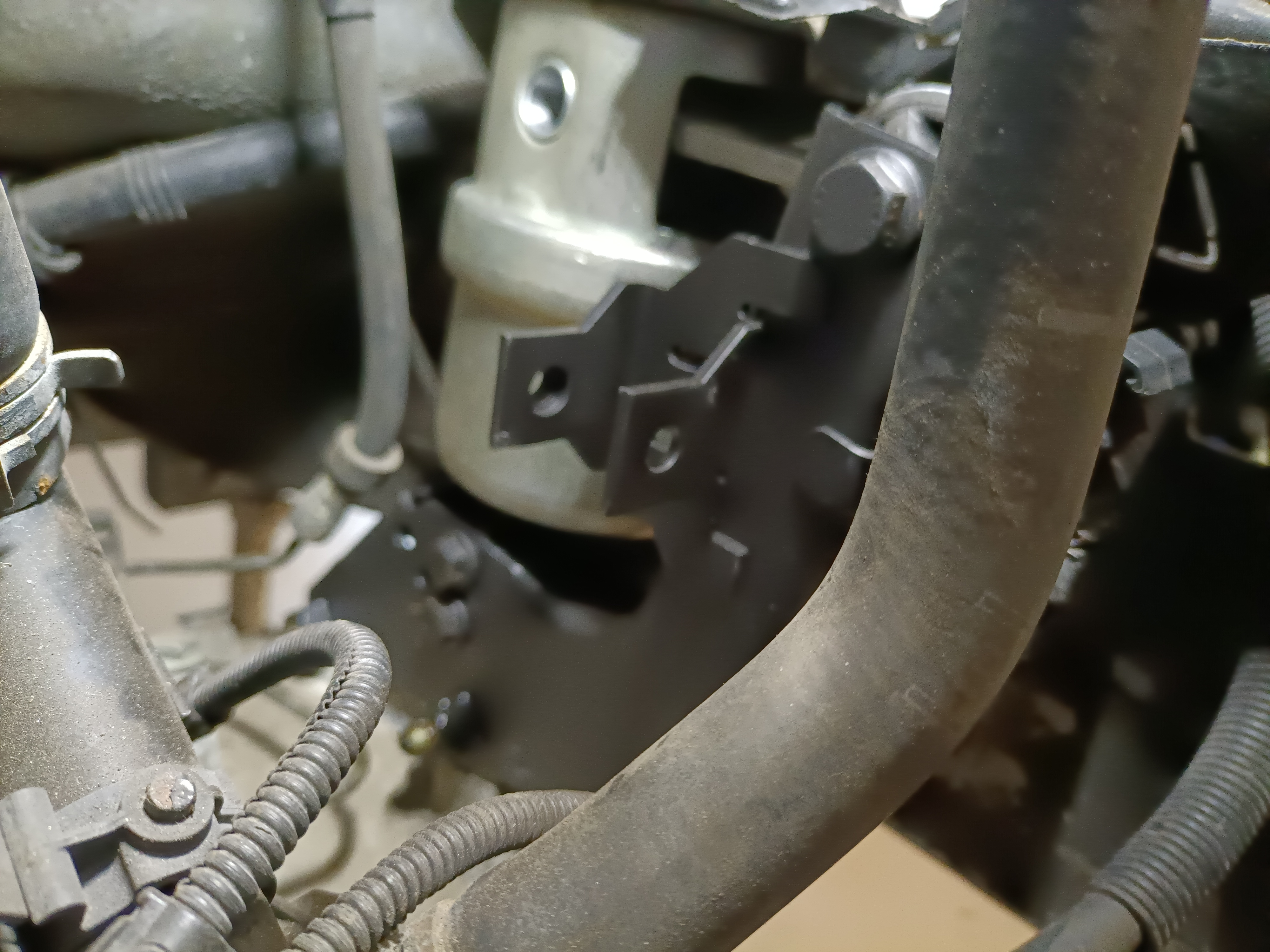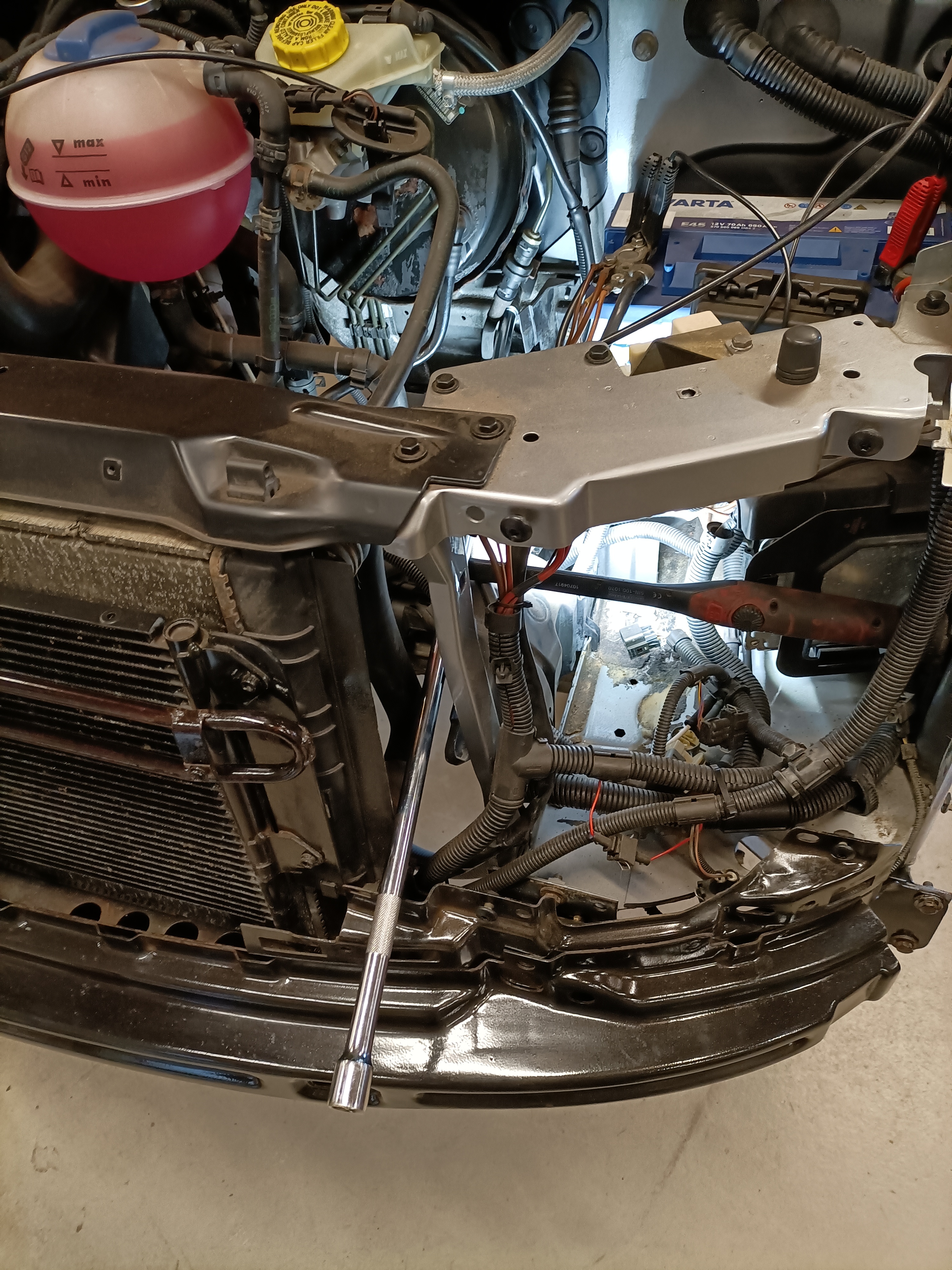 Nu kun je eenvoudig bij de onderste motorsteun bout komen, en deze losdraaien.