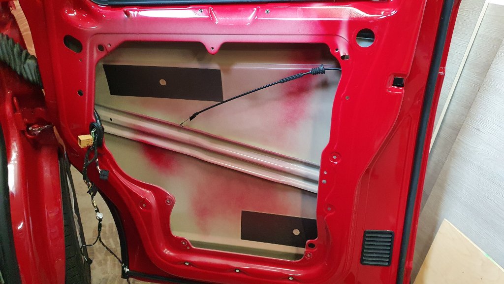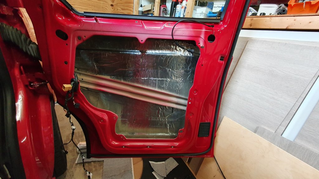 Dan binnendeur paneel m.b.v. alubutyl geïsoleerd voor een beter radio geluid.