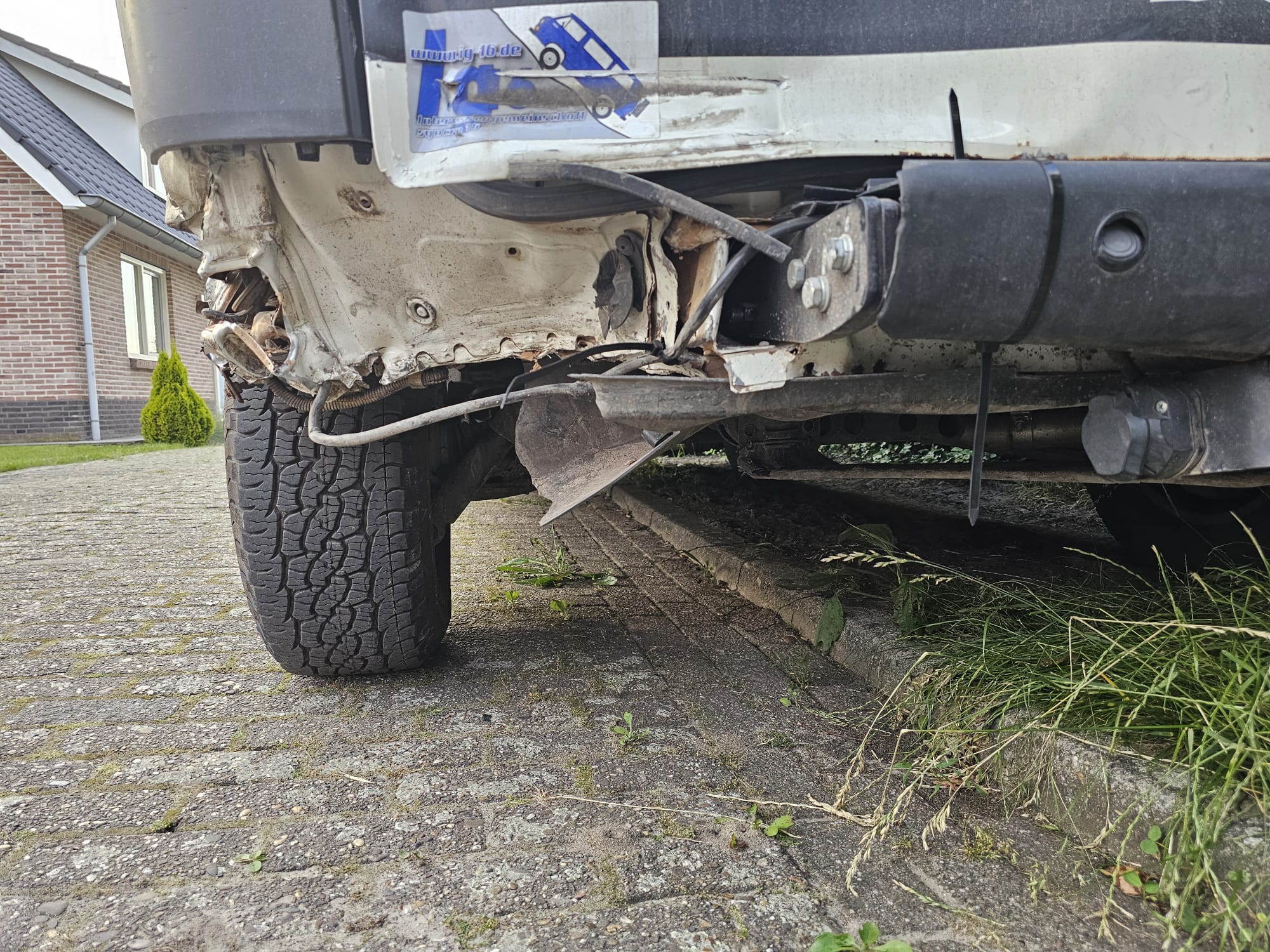 Laatst een onfortuinlijk paaltje getroffen in het hoge bermgras met zoektocht naar een nieuwe voorbumper....Vandaag dan een ongeval (zonder letsel bij partijen) waarbij ik nu een achterbumper en meer nodig heb. o.a. linkerachterhoek van de bus + klep. Daarbij ook de vensterbank met wasbakje versplinterd door de terugslag van de voorstoel. Ook het draaiplateau bestuurderstoel ontzet op het draaipunt en de bedplank de scharnieren achter afgebroken! De glasplaat uit de magnetron en aan diggelen. Was een klap na sterk afremmen in een file, ik denk zo van 80 naar 30 waarbij ik daarna vol in de kont gereden werd. Morgen even de band controleren want de kas heeft daar op ingesneden nadat de bus nog 200 meter doorgerold is de vluchtstrook op. De sleepdienst heeft de kas met de lier terug weggetrokken van de band en ik ben zo 150 km verder naar huis gereden :/