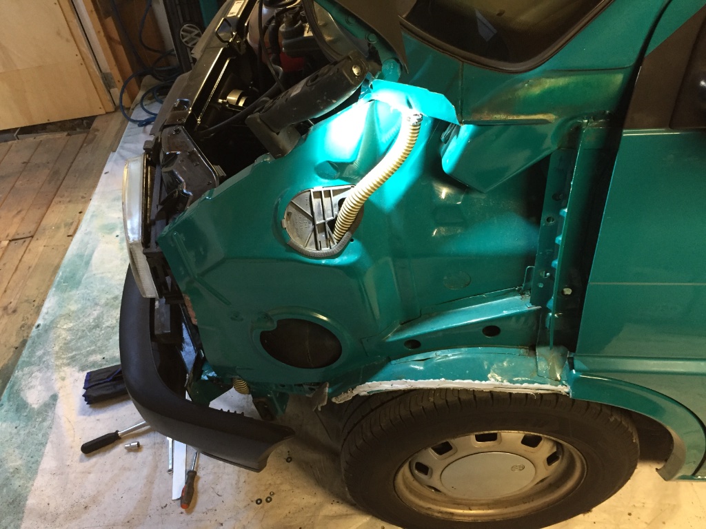 Maar bumper, koplampen, motorbak en plaatwerk zit allemaal op zijn plek. Het is weer even klaar. Maar de bijrijderszijde onder mijn luchtfilter heeft ook al TLC nodig. Voorlopig nog niet écht klaar ...