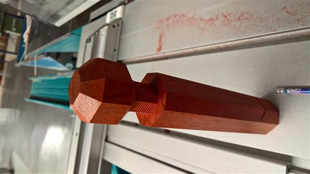 Het materiaal is Padoek, een zeer harde houtsoort.