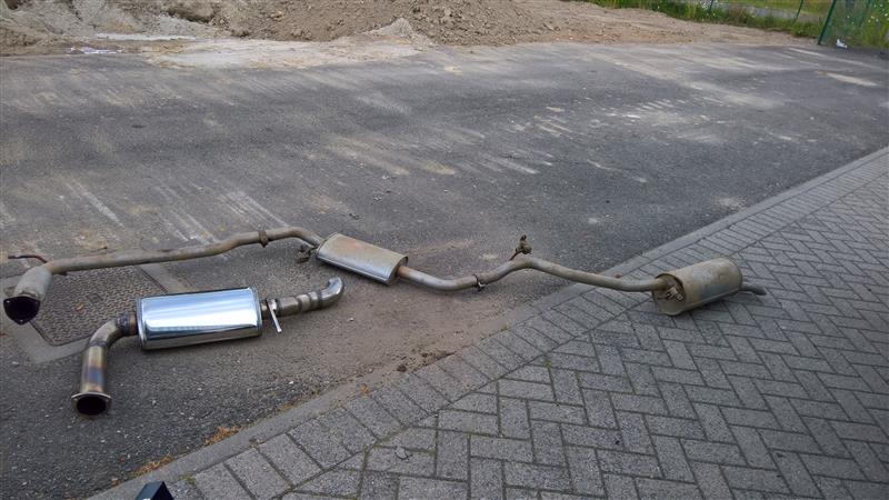 De sidepipe is makkelijk demonteerbaar, deze zit gewoon met 3 bouten op de downpipe.