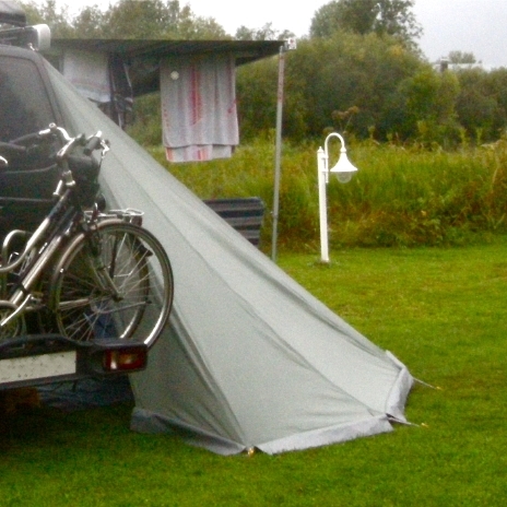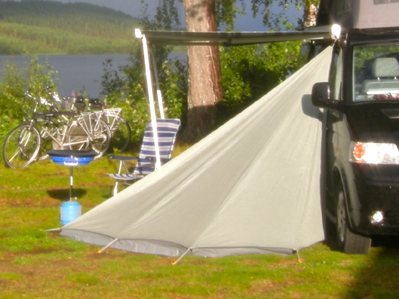 Zoals al eerder gepost, had ik in de zomer van 2009 een zijluifel van de De waard-tent mee. Dit beviel goed. Nu kun je wel zijluifels krijgen bij de Fiamma luifel, maar dit zijn van die lelijke rechte dingen en een heel gedoe om te bevestigen. En dat willen we niet, want we willen vlot staan.
