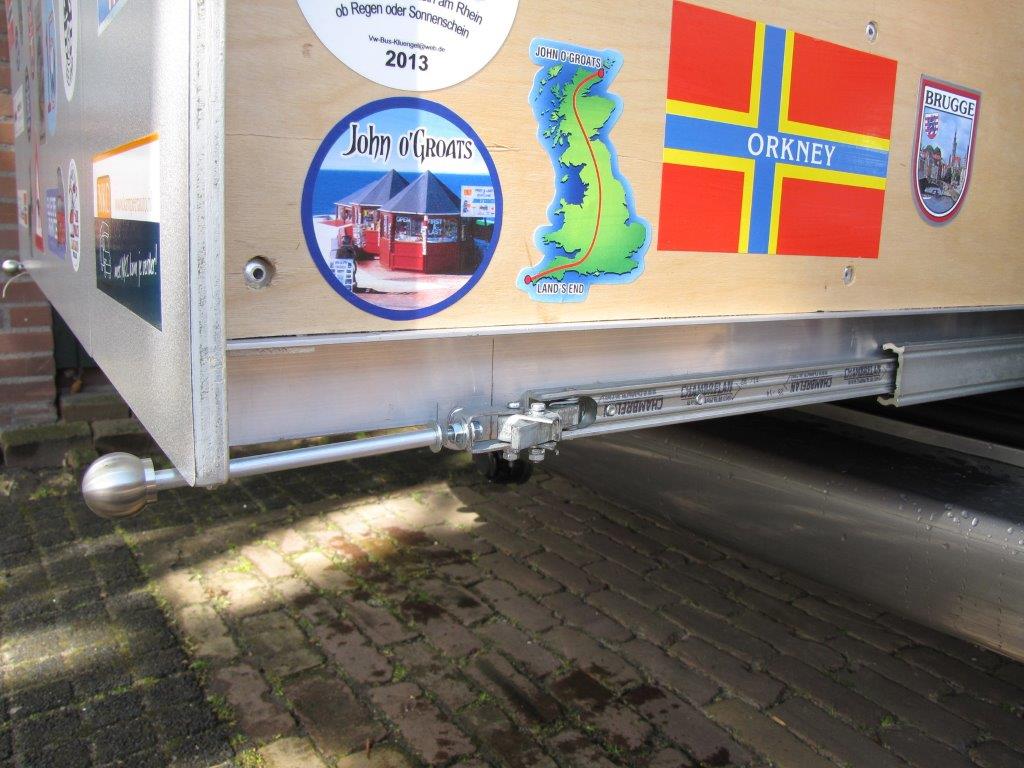 De tafel die in de bank zat schuiven we nu boven de bank onder het plafond. Daar zijn twee rails gemaakt plus stopper. We stoten ons hoofd gelukkig niet en hebben meer ruimte in onze kelder